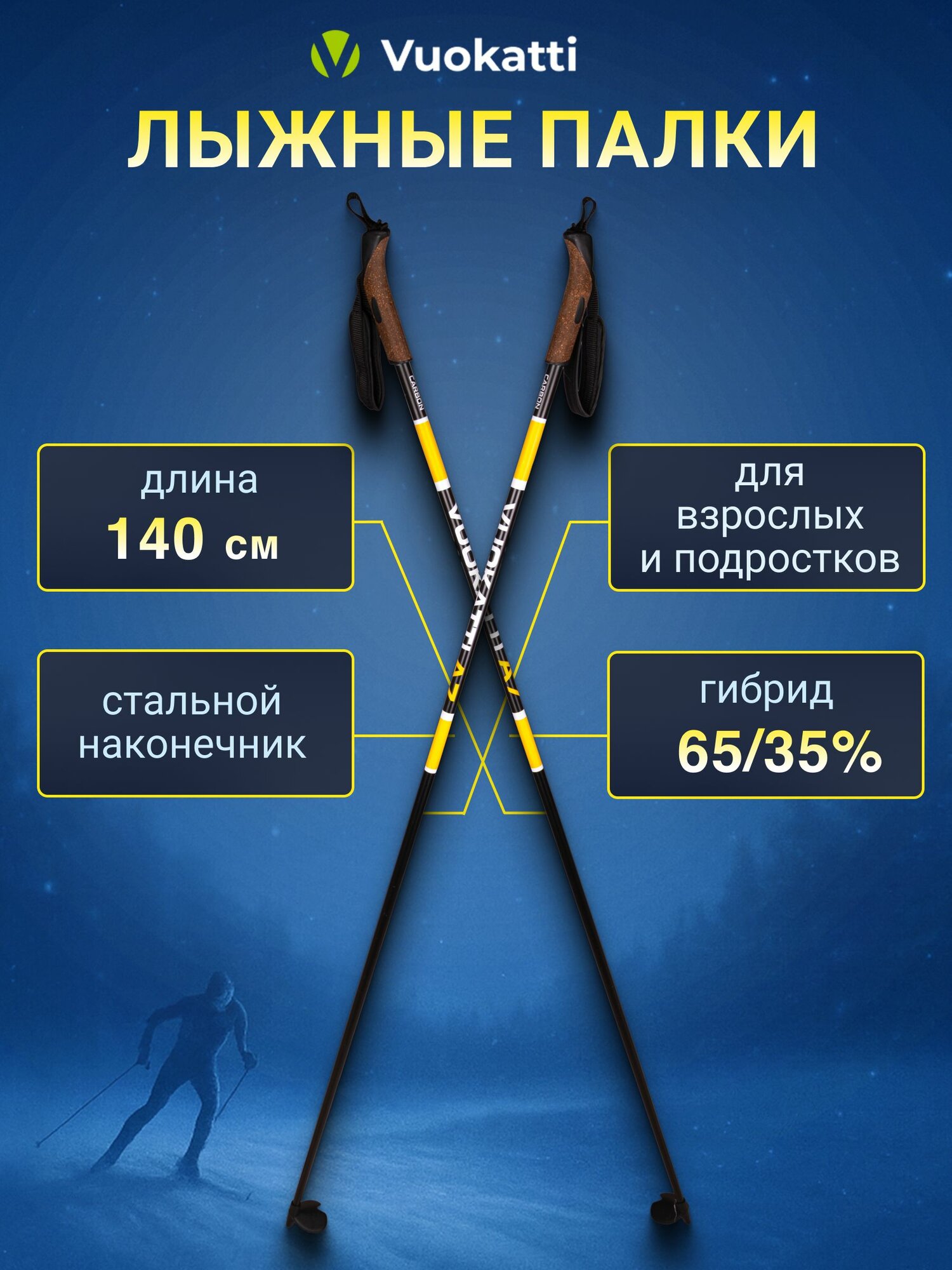 Купить Лыжные палки VUOKATTI Black Yellow 140 см гибрид 65/35 стекловолокно углеволокно с доставкой по всей России. Лыжные палки VUOKATTI Black Yellow 140 см гибрид 65/35 стекловолокно углеволокно: сравнение цен, характеристики, фото, актуальное наличие и цены.