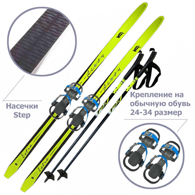 Лыжный комплект детский Extra салатовые / крепление Snowmatic K3 (Step) (лыжи 120см + палки 85см): сравнение цен, характеристики, фото, актуальное наличие и цены.