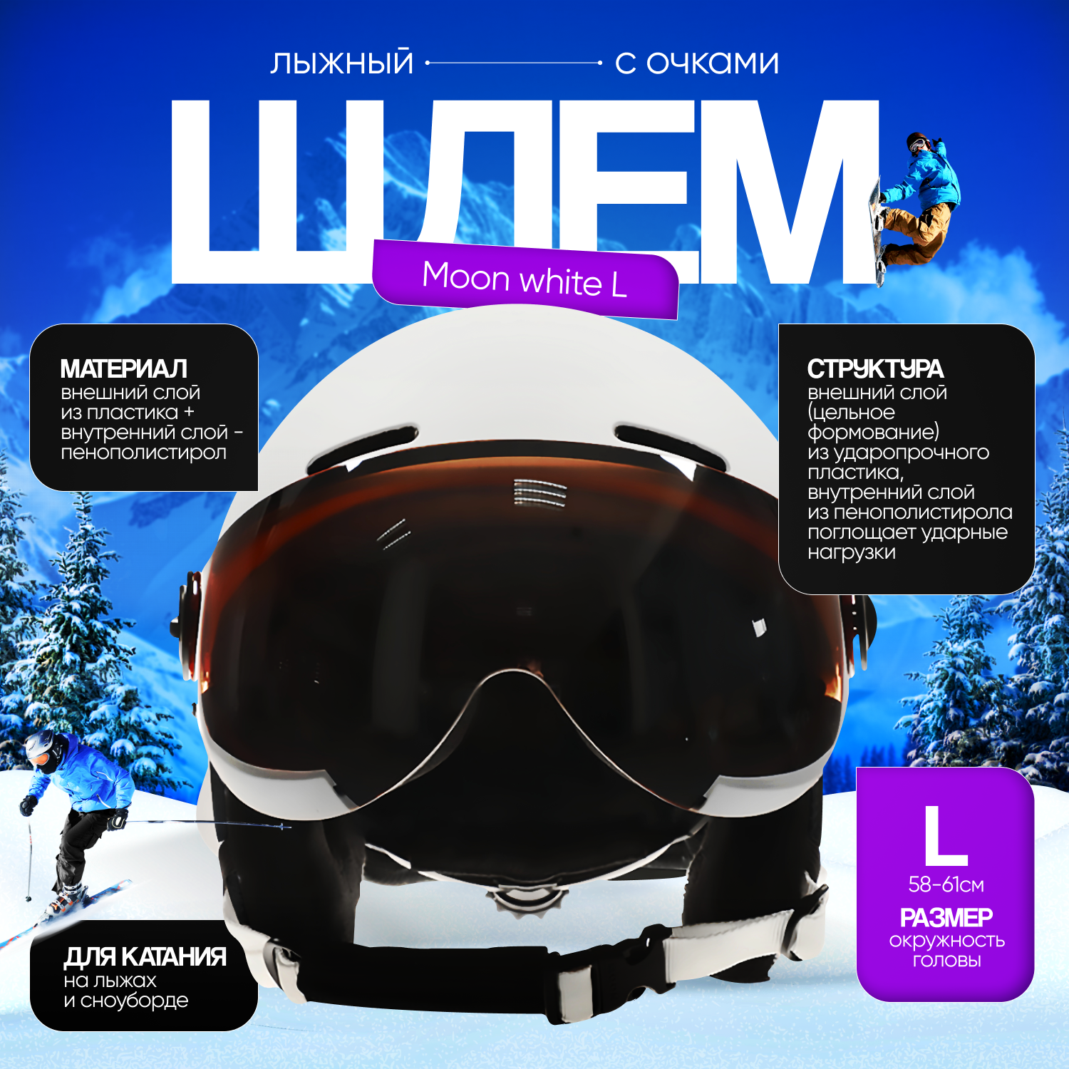 Купить Лыжный шлем Innopax Moon White L, с очками, тонированные, белый с доставкой по всей России. Лыжный шлем Innopax Moon White L, с очками, тонированные, белый: сравнение цен, характеристики, фото, актуальное наличие и цены.