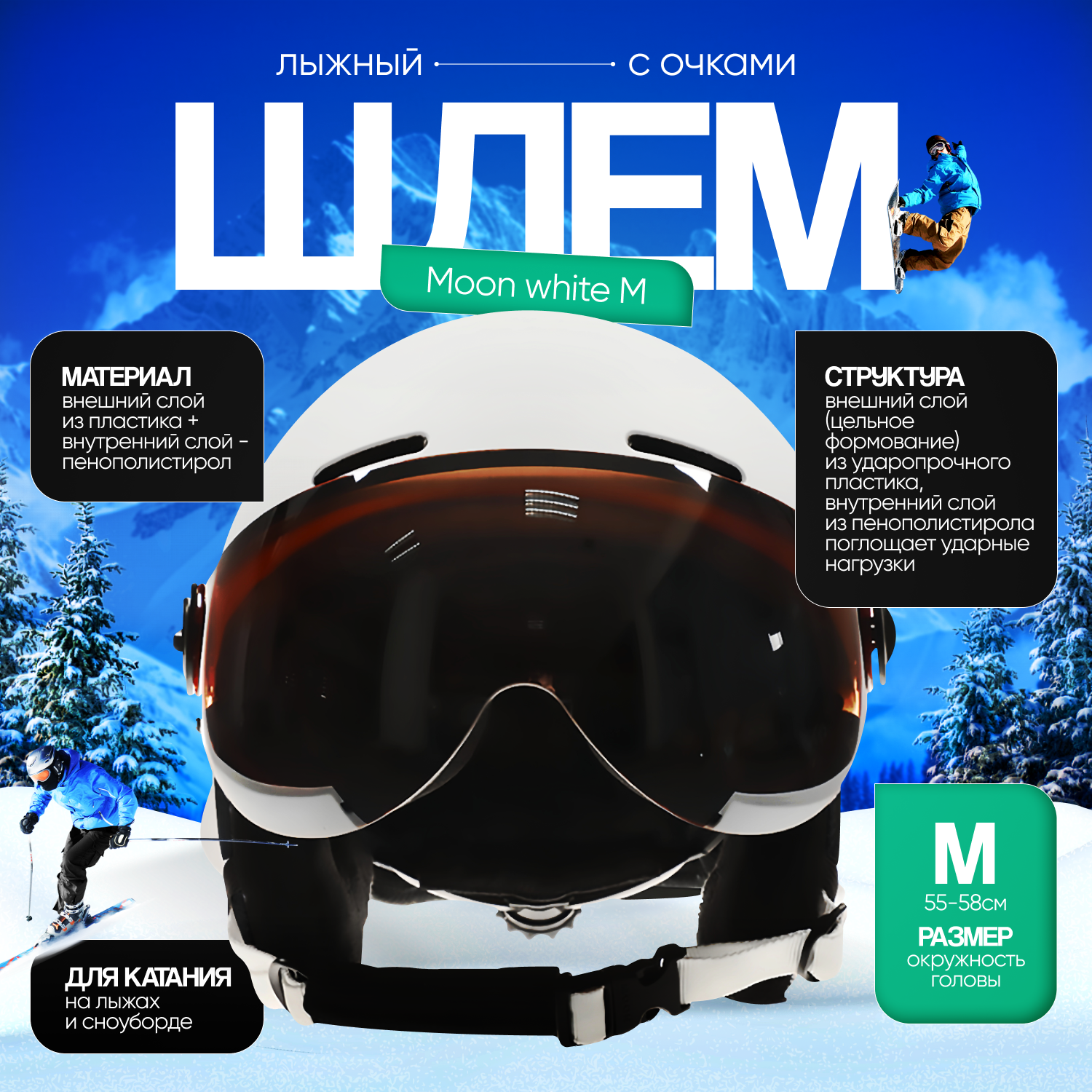 Лыжный шлем Innopax Moon White M, с очками, с вентиляционными отверстиями, белый: сравнение цен, характеристики, фото, актуальное наличие и цены.