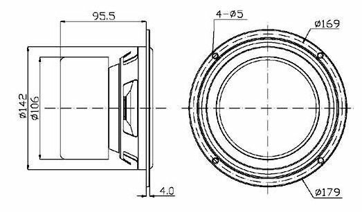 M6N Динамик НЧ СЧ, D 166 мм, 45 Вт, R 8 Ом 89dB 46Hz - 5kHz