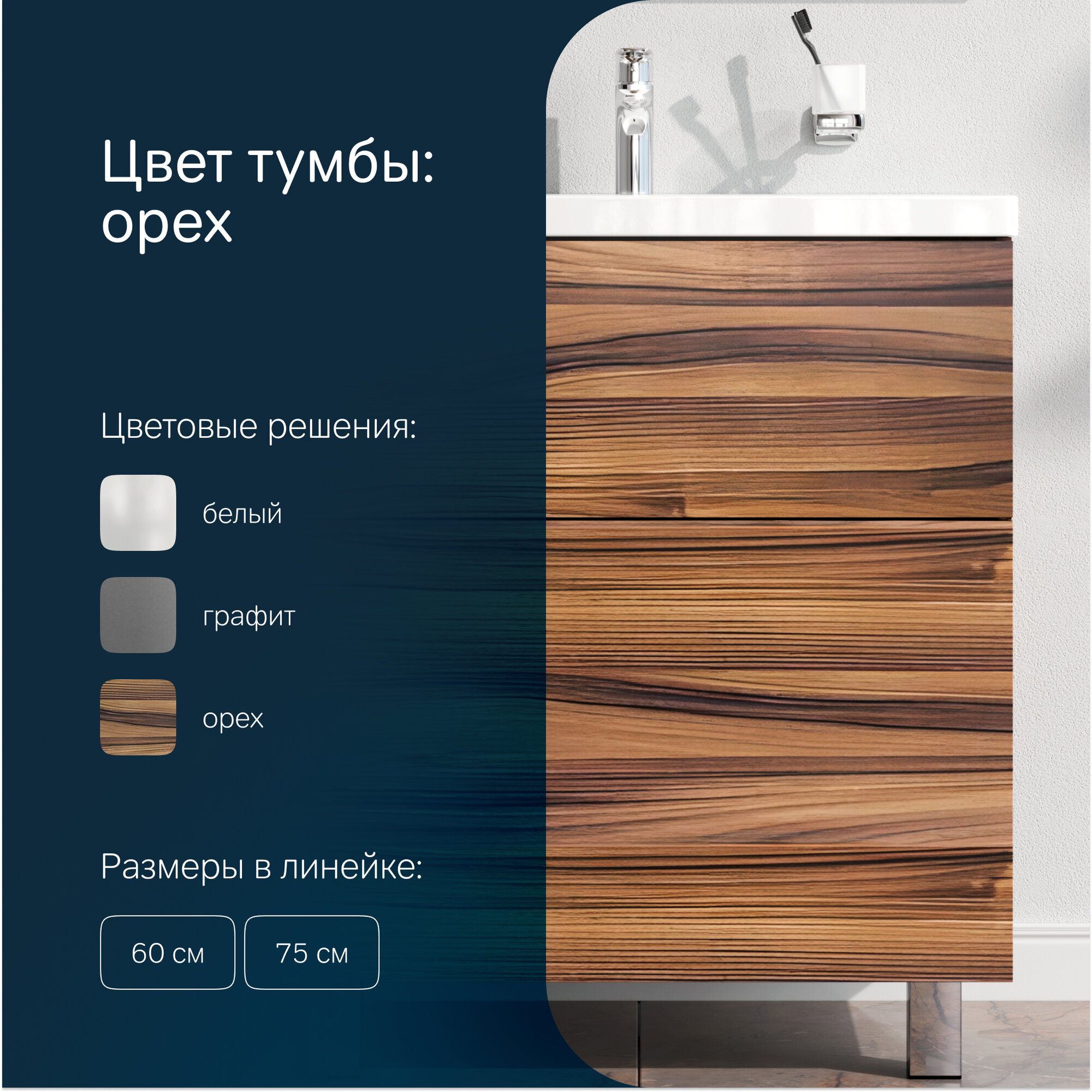Тумба под раковину AM.PM Gem напольная 75 см, 2 выдвижных ящика, цвет орех: сравнение цен, характеристики, фото, актуальное наличие и цены.