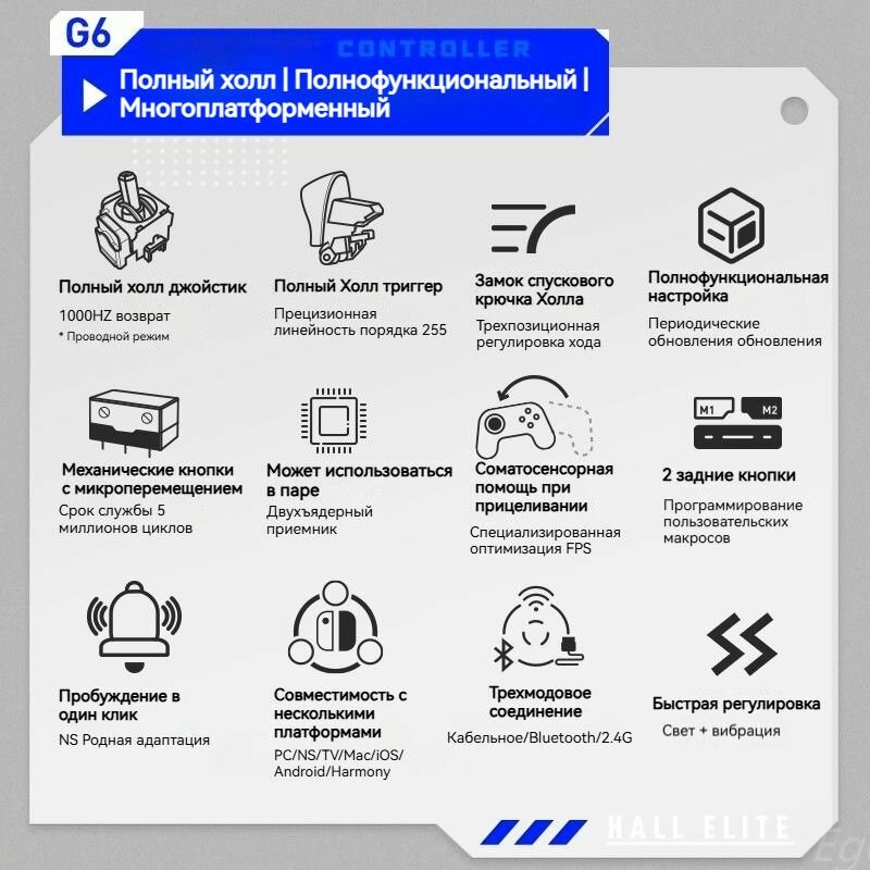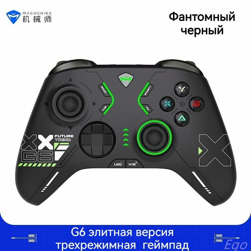 Machenike G6 геймпад, Полный Холл-джойсти + триггер, Bluetooth + приемник + проводной тройной режим, Фантомный черный: сравнение цен, характеристики, фото, актуальное наличие и цены.