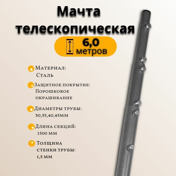 Мачта для антенны стальная, окрашенная 6,0м (секции 1,5м): сравнение цен, характеристики, фото, актуальное наличие и цены.