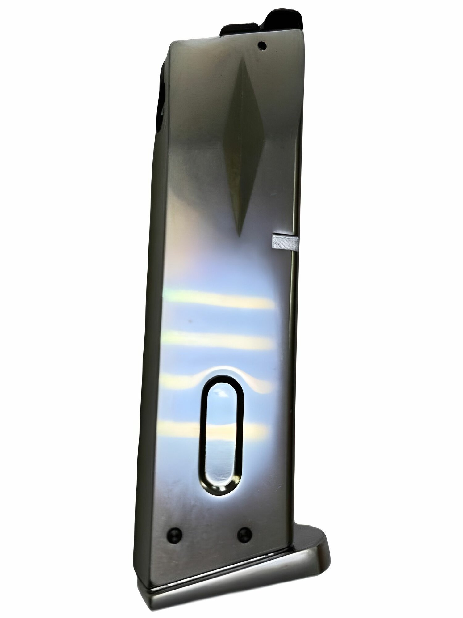 Запасной магазин на 25 пластиковых шаров размером 6мм для страйкбольного пневматического пистолета WE M92. Тип магазина - механический. Работает на Green Gas. Материал изготовления - алюминиевый сплав. Цвет- хром. Вес составляет всего 230 г. Запасной магазин является необходимым атрибутом для каждого страйкболиста. В том случае, если шарики заканчиваются, одним лёгким движением руки игрок может сменить магазин, и продолжить игру без потери времени.