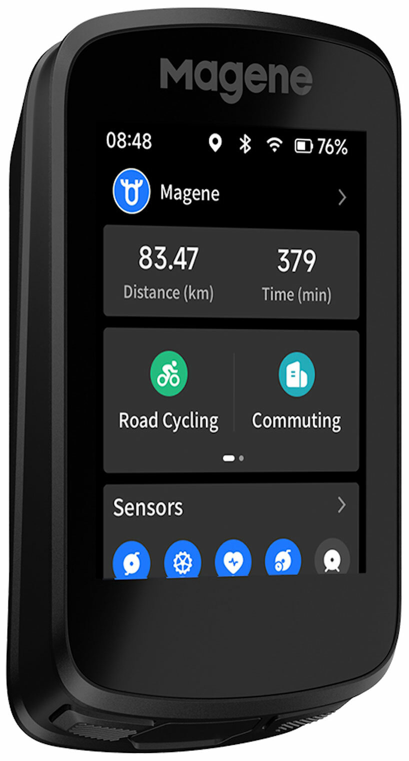 2,8 Цветной сенсорный экран, передача данных Wi-Fi и Bluetooth, умный помощник при езде Magene, настраиваемое отображение данных, Пошаговая навигация, 11 языков, интеллектуальные уведомления, обучение в помещении, подключение 8 датчиков.