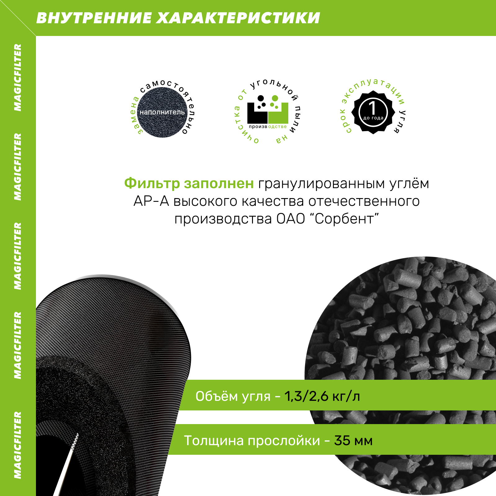 Для эффективной работы, уголь в фильтрах Magic Air, необходимо менять по мере выработки ресурса (в зависимости от условий эксплуатации – примерно 1-2 раза в год).