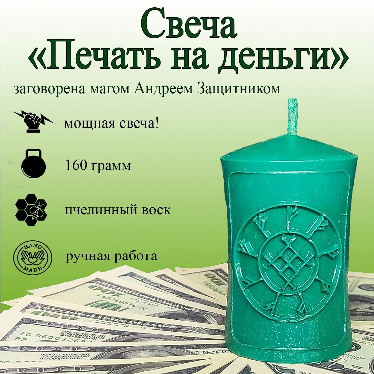 Магическая свеча "Печать на деньги" поможет вам решить материальные проблемы, и выйти на новый уровень дохода. Каждая свеча — это ручная работа мастера.