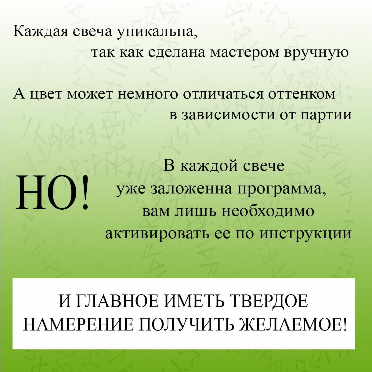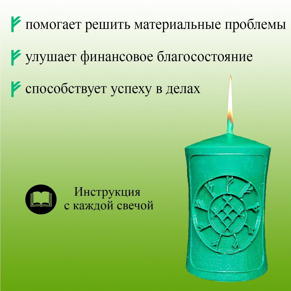 Набор зелёных магических свечей с рунами на привлечения денег