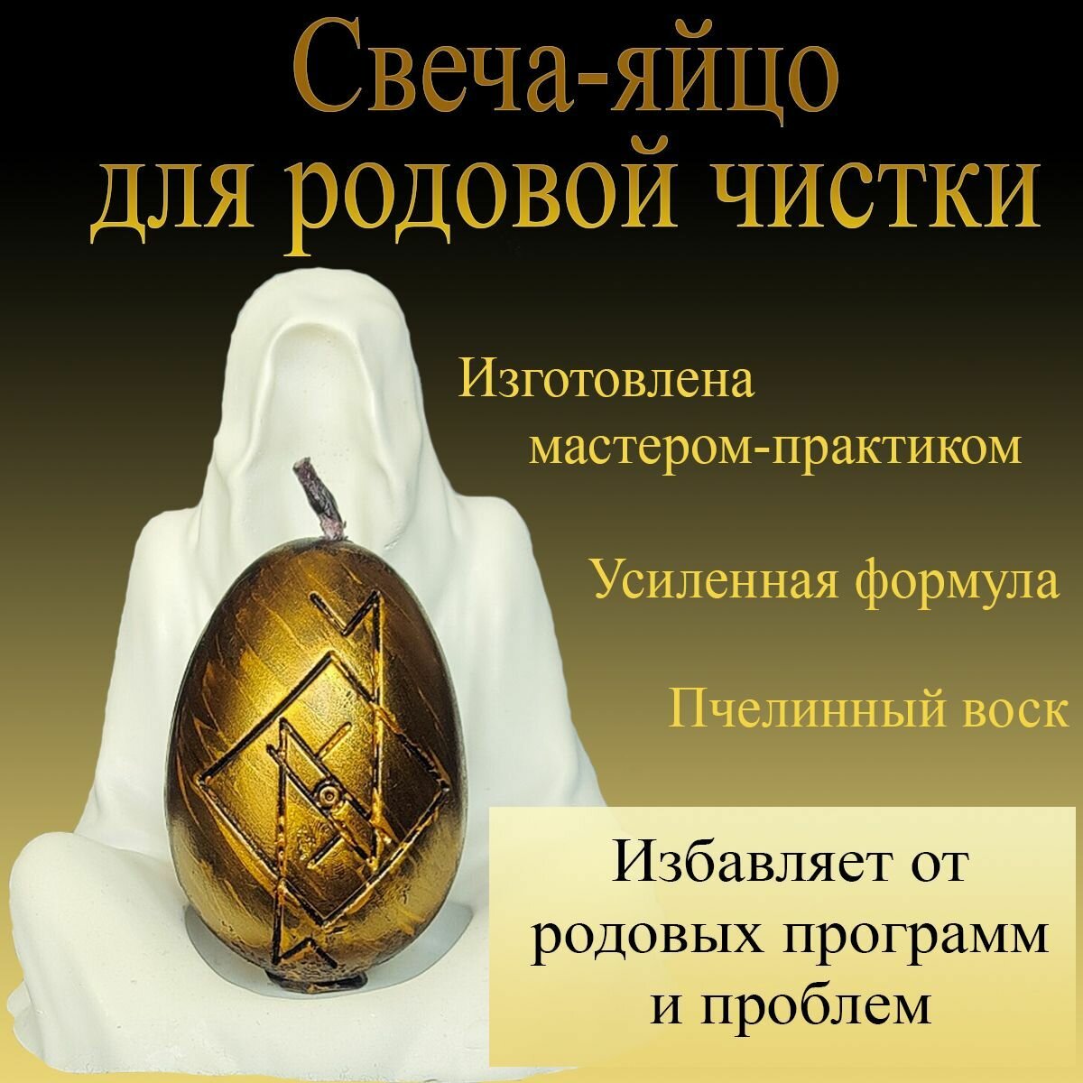 Магическая свеча "Яйцо для родовой чистки" с рунами и оговором, для решение родовых проблем.