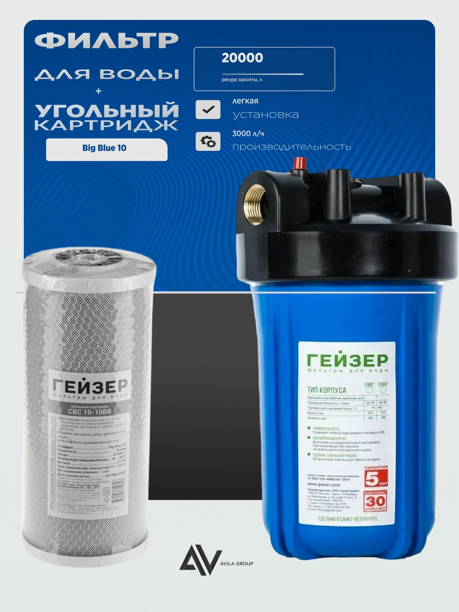 Магистральный фильтр для воды «Гейзер Big Blue 10» с угольным картриджем 5 мкм в комплекте, произв-ть 3000 л/ч c ключом, 2 кг. Фильтр для скважины магистральный Биг Блю 10: сравнение цен, характеристики, фото, актуальное наличие и цены.