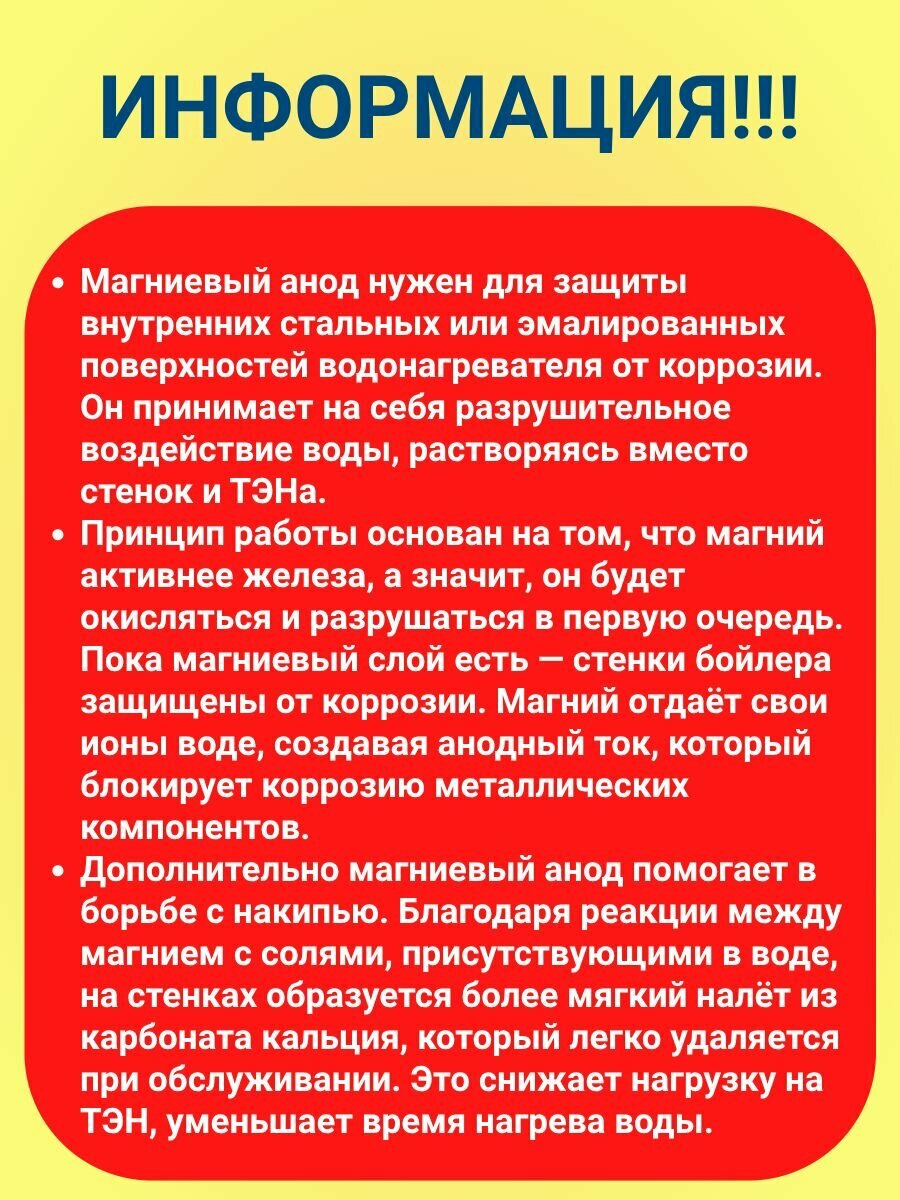 Магневый анод М8, L-450 мм, D-33 мм.: сравнение цен, характеристики, фото, актуальное наличие и цены.