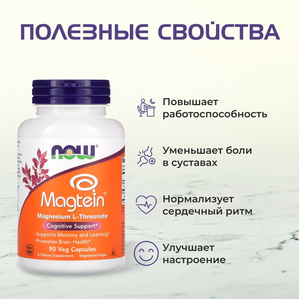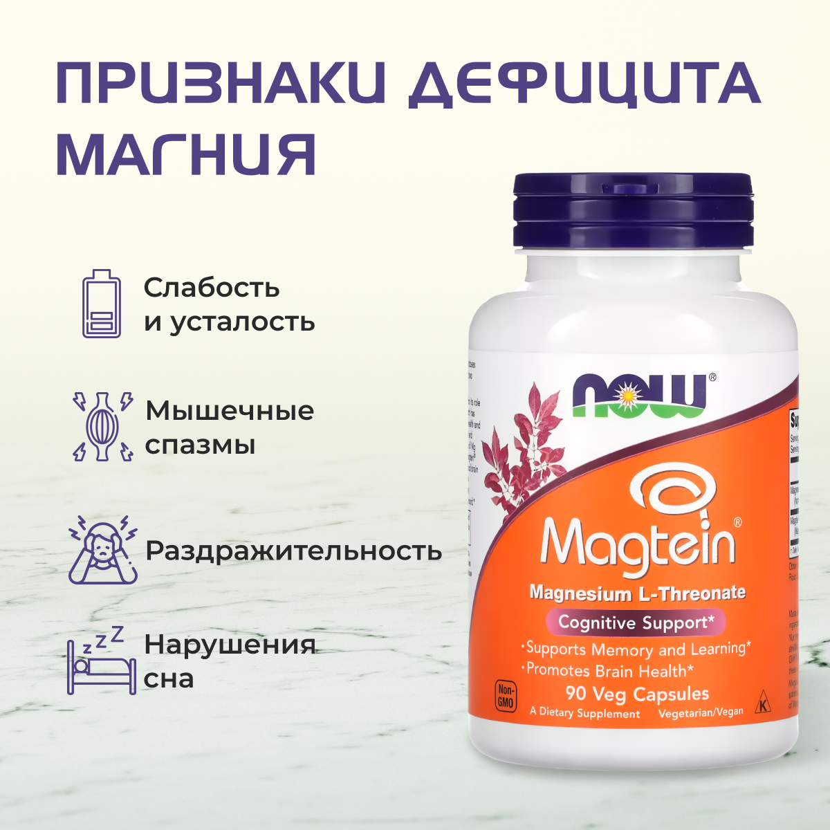 Магний NOW Magtein L-Threonate 90 caps / Л-Треонат 90 капсул против стресса и тревоги: сравнение цен, характеристики, фото, актуальное наличие и цены.