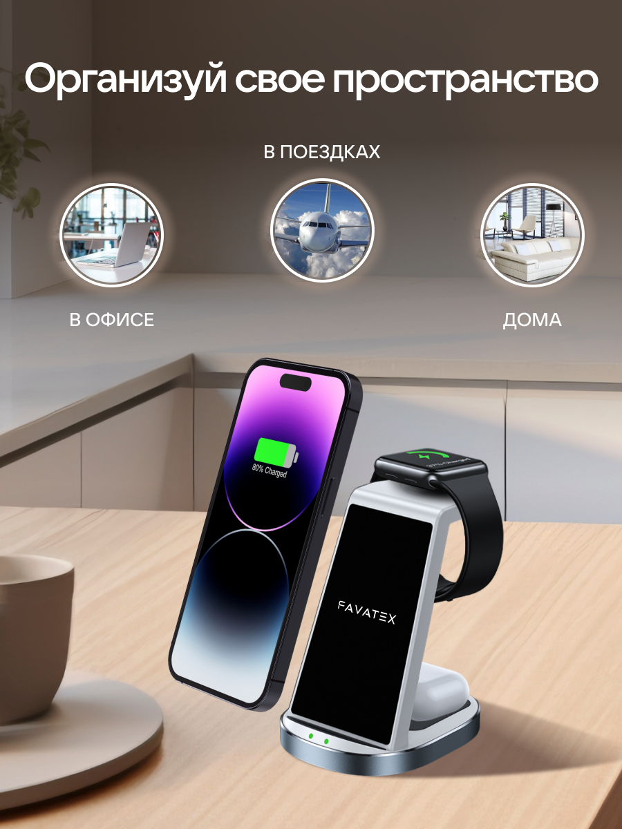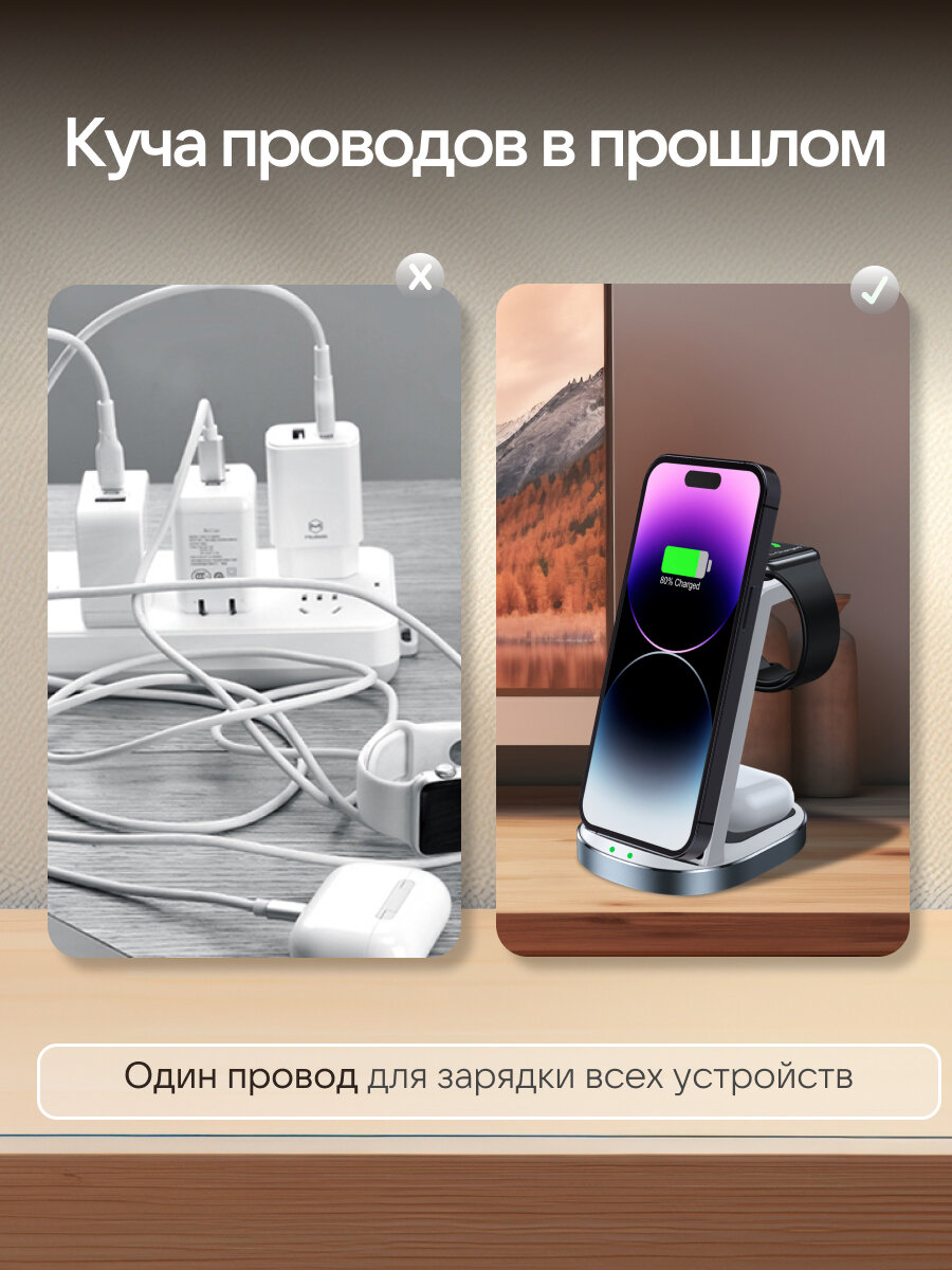 | Конструкция беспроводного устройства | для 1 телефона, зона для Apple Watch, зона для беспроводных наушников |