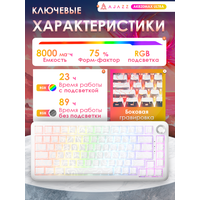 | Комплектация | руководство по эксплуатации, 4 сменных переключателя, один провод USB type C, один инструмент съемник (пуллер) для клавиш, пластиковый кожух для защиты от пыли |