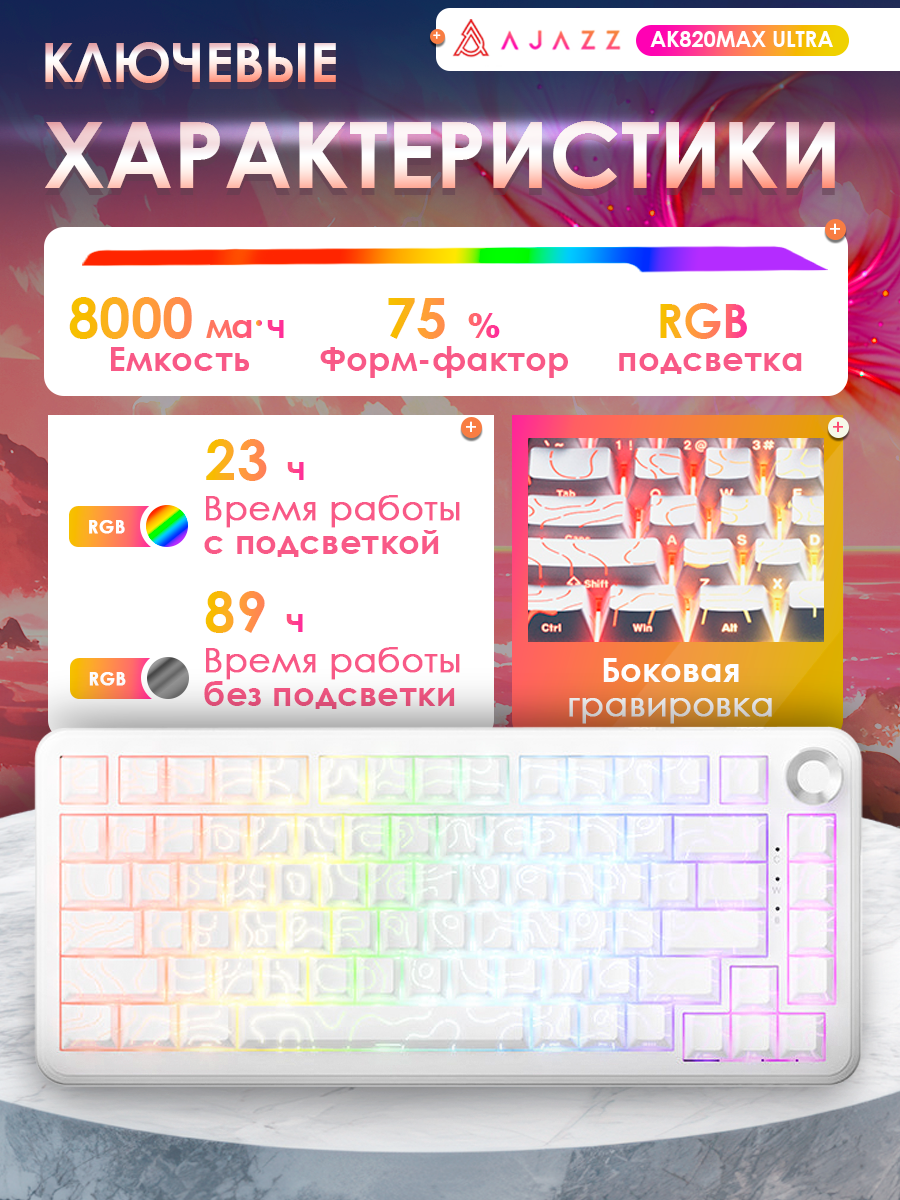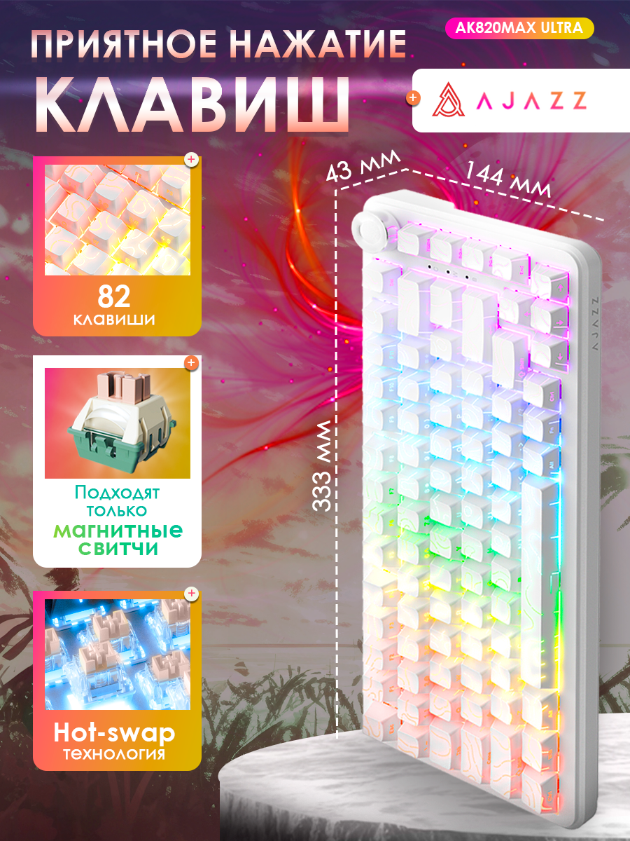 Магнитная игровая клавиатура AJAZZ AK820 MAX ULTRA Magnetic Grain Switch с подсветкой RGB и боковой гравировкой: сравнение цен, характеристики, фото, актуальное наличие и цены.