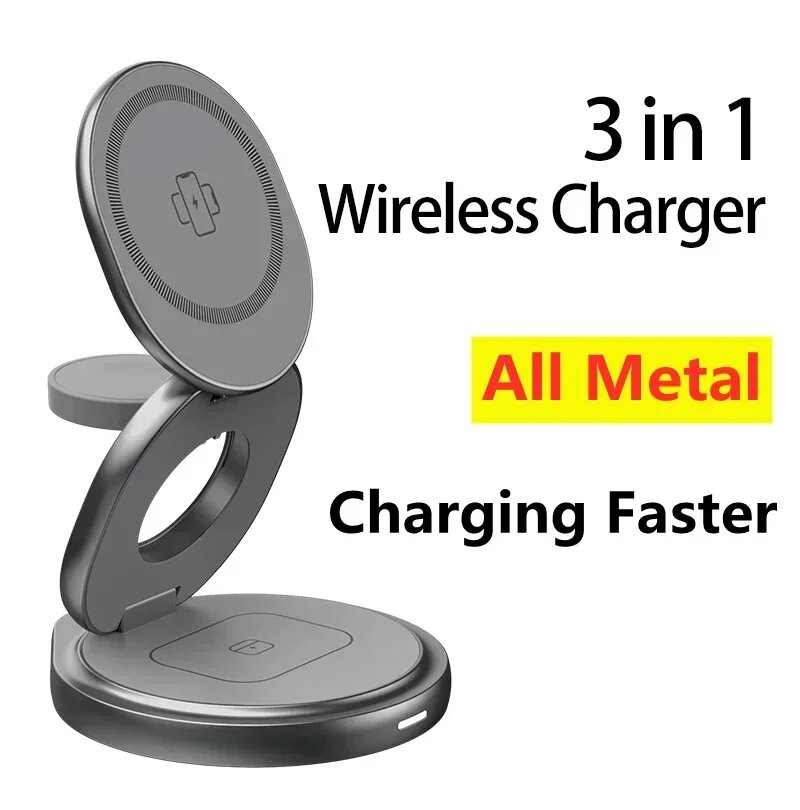 Магнитная подставка для быстрого беспроводного зарядного устройства из цинкового сплава, портативная зарядная станция 3 в 1, для iPhone 16 15 14 Apple Watch Airpods, Gray: сравнение цен, характеристики, фото, актуальное наличие и цены.