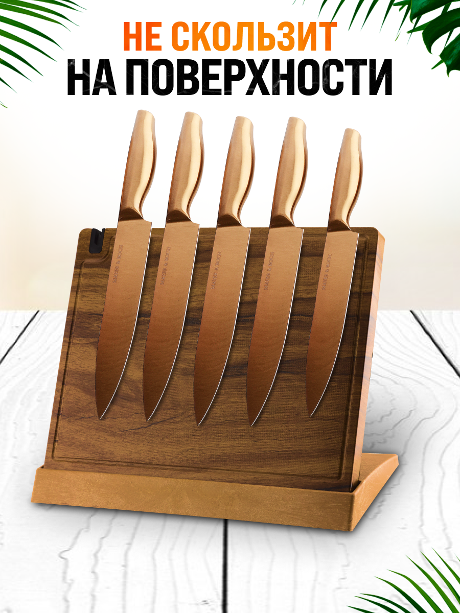 Представляем элегантную магнитную подставку для ножей, которая станет незаменимым помощником на вашей кухне! Эта универсальная конструкция способна вместить до шести ножей различных размеров, надежно удерживая их на магнитной основе, что обеспечивает безопасность и порядок на рабочем пространстве. Элегантный дизайн подставки идеально впишется в любой интерьер, добавляя нотку современности и утонченности. Высококачественные материалы гарантируют долговечность и надежность изделия, обеспечивая безопасное и удобное использование на протяжении многих лет. Благодаря своим многофункциональным возможностям, эта магнитная подставка станет незаменимым помощником для любого повара, как профессионала, так и любителя. Она поможет организовать рабочее пространство, обеспечит безопасность и гигиену при приготовлении пищи, а также станет стильным украшением вашей кухни. Не только как держатель для ножей, но и как разделочная доска — подставка оснащена прочным антибактериальным покрытием, позволяющим использовать её для приготовления пищи. Её гладкая поверхность легко очищается и предотвращает скольжение продуктов во время работы. Подставка с компактным органайзером для хранения мелких кухонных принадлежностей, таких как щетки, ложек, вилок, ножей. Это решение поможет вам организовать пространство кухни и сделать повседневные задачи более эффективными. Создайте гармоничное и функциональное пространство на вашей кухне с помощью этой многофункциональной магнитной подставки для ножей! Эта многофункциональная подставка – идеальный подарок для тех, кто ценит порядок, функциональность и стиль в каждой детали. Она станет настоящим украшением кухни и незаменимым помощником в приготовлении вкусных и здоровых блюд