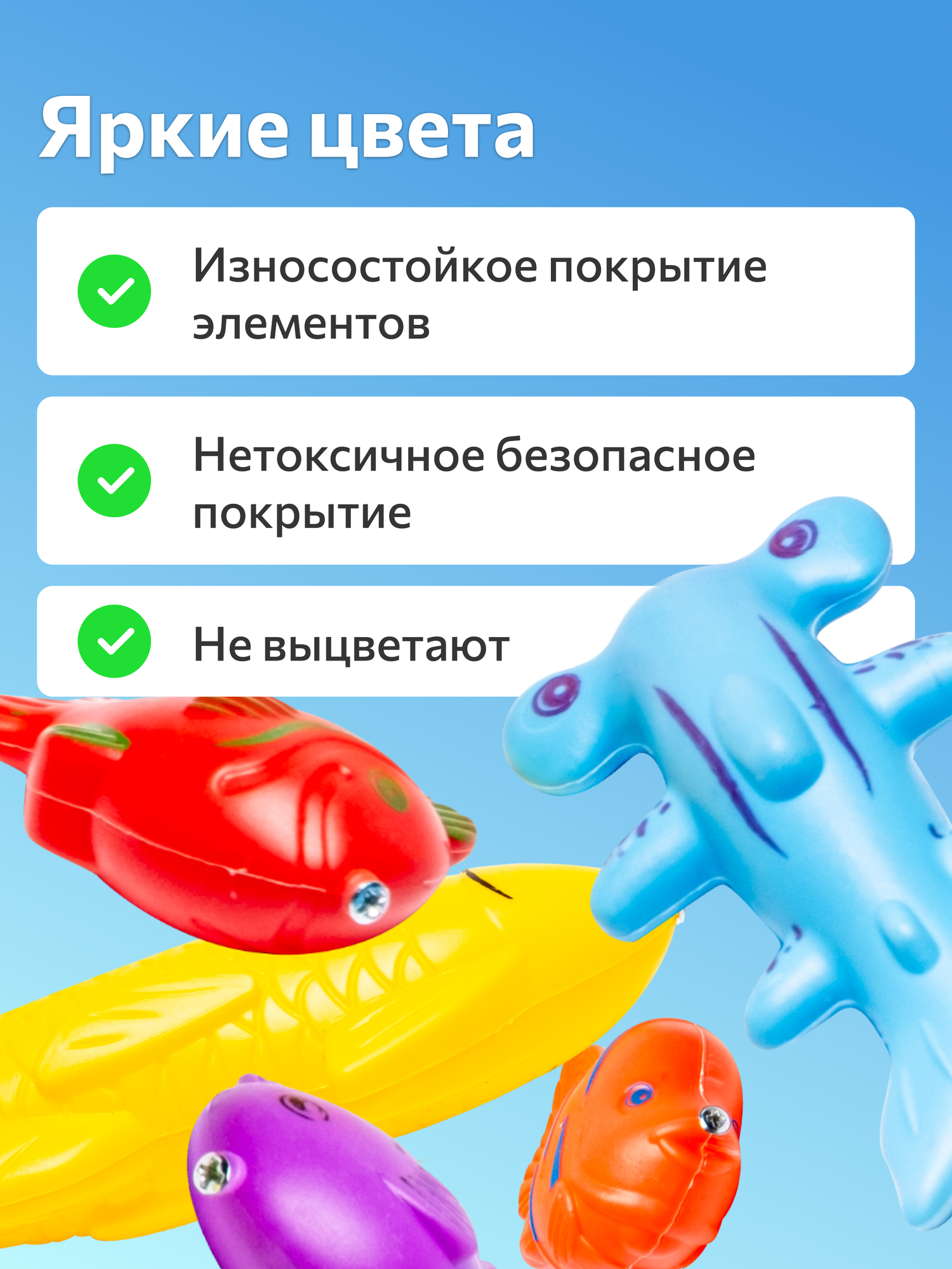Детская магнитная рыбалка с бассейном – это лучший набор игрушек для маленького ребенка, для мальчиков и девочек. Водяной игровой развивающий комплект с рыбками удобно брать с собой в ванну во время купания малыша. Увлекательная игра в рыбалку способствует активному развитию моторики рук ребенка, тренирует ловкость и меткость, концентрацию внимания, усидчивость, терпение. В комплект входит корзина для хранения игрушечных предметов (рыбок), удочки и сачок, мягкий бассейн, рыбки. Такие умные развивалки созданные по принципу методики развития Монтессори, обладают значительным эффектом – благодаря им ребенок во время плавания в бассейне или игр в ванне узнает многое об окружающем мире, учится различать цвета, изучать цифры, распознавать фигуры рыб и других морских обитателей. Игрушка для плавания познакомит ребенка с жителями подводного мира, набор рыб можно использовать как сортер. Необычные плавающие игрушки можно мыть, что обеспечивает их чистоту и безопасность. Рыбка притягивается на удочку с помощью магнита и металлических соединений. Яркие красивые развивалки в подарочной коробке – это лучший новогодний презент для любого ребенка. Игра для детей в возрасте от 3 лет.