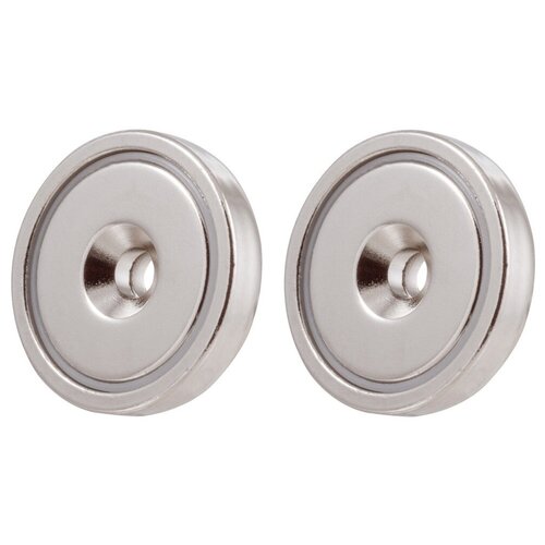 Магнитное крепление с отверстием А32 представляет собой неодимовый магнит кольцо в стальном корпусе с отверстием 5.5 мм. Магниты под саморез чаще всего используют для производства мебели, для сборки стеллажей, для крепления панелей на стену. В театрах магниты с отверстием нужны для крепления декораций. Дома делают магнитные замки для дверей и шкафов, для крепления светильников. Главные преимущества магнита под саморез: его можно в любой момент снять; установка не занимает много времени; не нужно повреждать поверхность мебели, стен или потолка. Внутри сильный неодимовый магнит. Сила сцепления магнитного крепления составляет до 23 кг на отрыв (до 11.5 кг при использовании на сдвиг). Внимание! При попарном соединении крепления могут магнититься друг к другу со смещением. Диаметр крепления 32 мм. Диаметр отверстия мин. 5.5 мм, макс. 10.5 мм. В упаковке 2 шт.