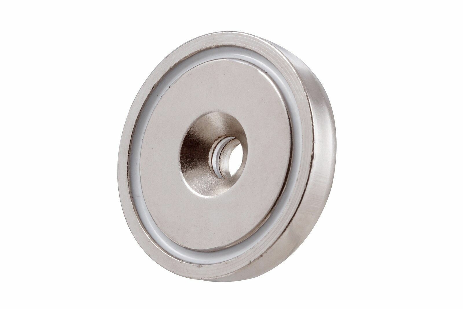 Магнитное крепление с отверстием А48 представляет собой неодимовый магнит кольцо в стальном корпусе с отверстием 8.5 мм.