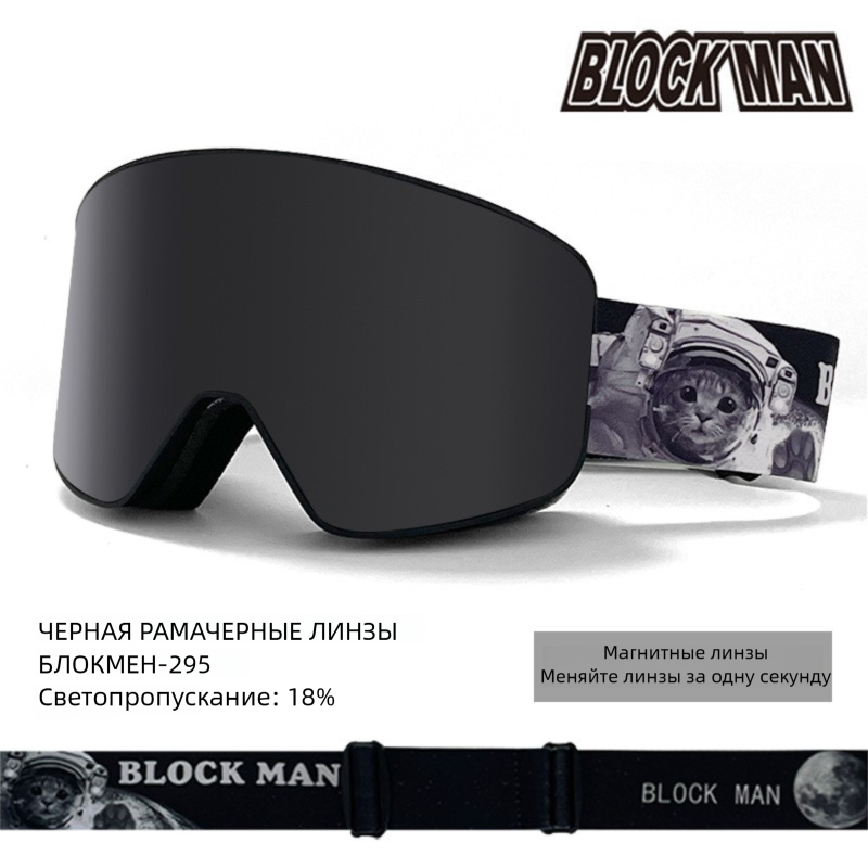 Купить Магнитные горнолыжные очки с двойным слоем, защищающие от запотевания и снежной слепоты,Черная оправа, черные линзы с доставкой по всей России.
