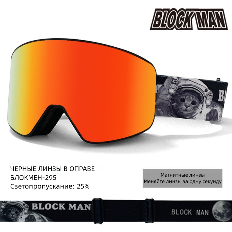Купить Магнитные горнолыжные очки с двойным слоем, защищающие от запотевания и снежной слепоты,Черная оправа с красными линзами с доставкой по всей России.