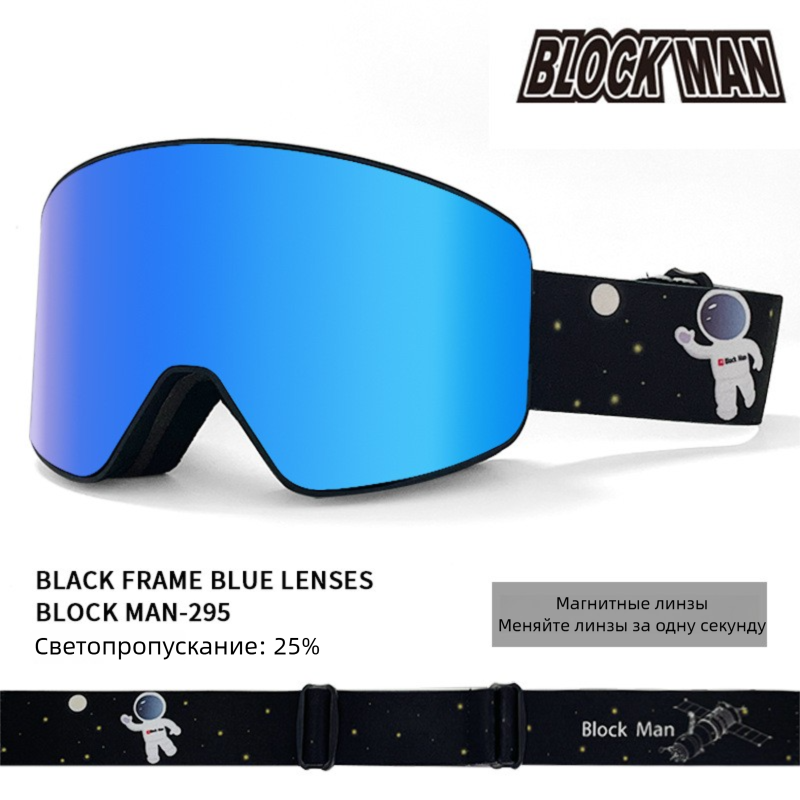 Купить Магнитные горнолыжные очки с двойным слоем, защищающие от запотевания и снежной слепоты,Черная оправа, синие линзы с доставкой по всей России.