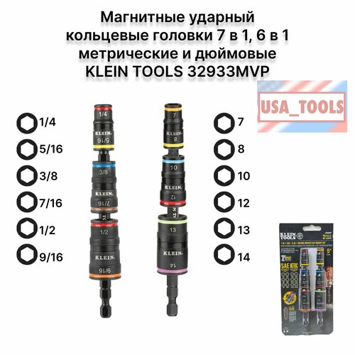 Купить Магнитные ударный кольцевые головки 7 в 1, 6 в 1 метрические и дюймовые KLEIN TOOLS 32933MVP с доставкой по всей России.