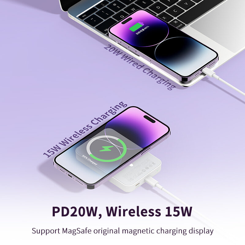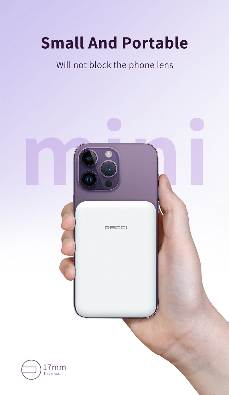 Магнитный беспроводной аккумулятор RECCI Magnetic for Magsafe 15W, 10000 mAh, PD20W, Белый: сравнение цен, характеристики, фото, актуальное наличие и цены.
