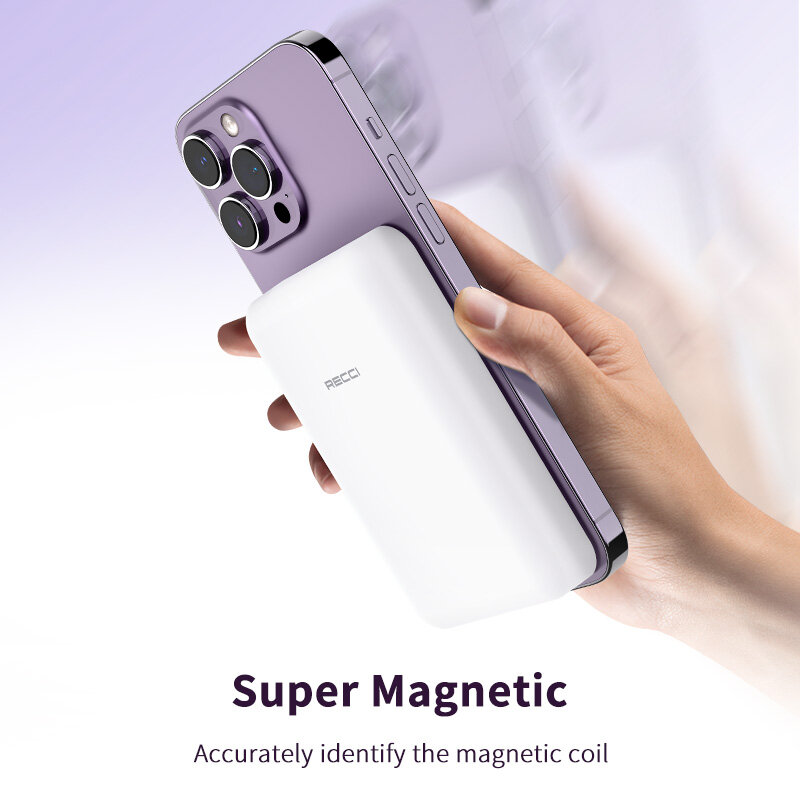 Купить Магнитный беспроводной аккумулятор RECCI Magnetic for Magsafe 15W, 10000 mAh, PD20W, Белый с доставкой по всей России.