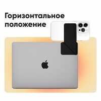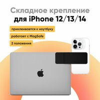 Магнитный держатель представляет собой тонкую накладку, которая фиксируется на крышке лэптопа и удерживает смартфон с помощью магнитов. Совместим с iPhone 12/13/14 серии, а также смартфонами с поддержкой технологии MagSafe. Мобильное устройство можно фиксировать в горизонтальном или вертикальном положении. Изготовлен из мягкой искусственной кожи, не царапает поверхность ноутбука. Можно переклеивать множество раз, не опасаясь за надежность фиксации. Не крепится на телефон, если на нем есть какие-либо подставки или картхолдеры, а также хорошо держится только на крышке ноутбука с гладкой поверхностью.