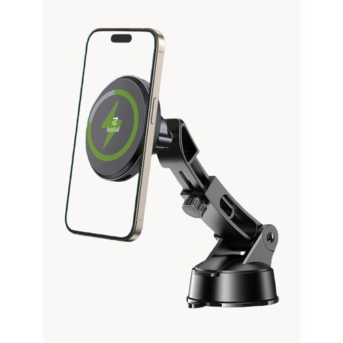 Магнитный держатель для смартфона: быстрая беспроводная зарядка и удобство использования Магнитный держатель для смартфона, предназначен для использования в автомобиле и подходит для устройств на базе iOS и Android итд. Он обеспечивает быструю беспроводную зарядку мощностью 15W, что позволяет быстро зарядить ваш телефон без необходимости подключения к розетке. Держатель оснащен механизмом подъема и возможностью поворота на 360°, что позволяет регулировать его без ограничений. Удлинительная штанга позволяет установить телефон на оптимальной высоте для комфортного использования. Держатель крепится к лобовому стеклу, приборной панели или любой другой гладкой поверхности с помощью присоски или зажима. Материал изготовления – алюминий и ABS-пластик, что обеспечивает прочность и долговечность конструкции. В комплекте с держателем идет кабель Type-C – Type-C, что позволяет заряжать телефон без использования дополнительных адаптеров. Выбирая магнитный держатель для телефона, вы получаете удобный и функциональный аксессуар для вашего автомобиля, который обеспечит быструю беспроводную зарядку и удобство использования.