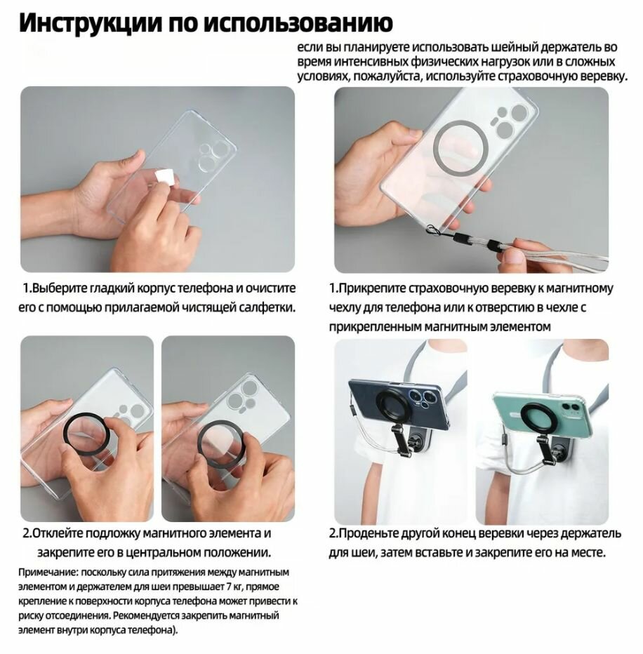 обратите внимание на то, что мощность магнитов MagSafe рассчитана на крепление к телефону без чехла. В этом случае магниты действительно будут держать телефон максимально прочно. Если вы используете с MagSafe телефон в чехле, его наличие будет ослаблять мощность магнитов. держатель магнитный для телефона; держатель на шею magsafe; держатель на шею для телефона; держатель на шею; держатель на шею для смартфона; магнитный держатель на шею для телефона; магнитный держатель magsafe; магнитный держатель magsafe для телефона; магнитный держатель magsafe с опорным кольцом; telesin magsafe; держатель telesin;