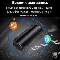 Характеристики: Формат записи: WAV Цвет: черный Встроенная память: 8G 16GB 32G Материал корпуса: ABS Нескользящая Текстура Время записи: 40 дней непрерывной записи Макс. Время записи: 1000 часов (16 Гб) Метод записи: запись одной кнопкой Расстояние: 40 м Микрофон: встроенный HD микрофон Скорость записи: 192 кбит/с Вес изделия: около 15 г Батарея: 2500 мАч литиевая батарея