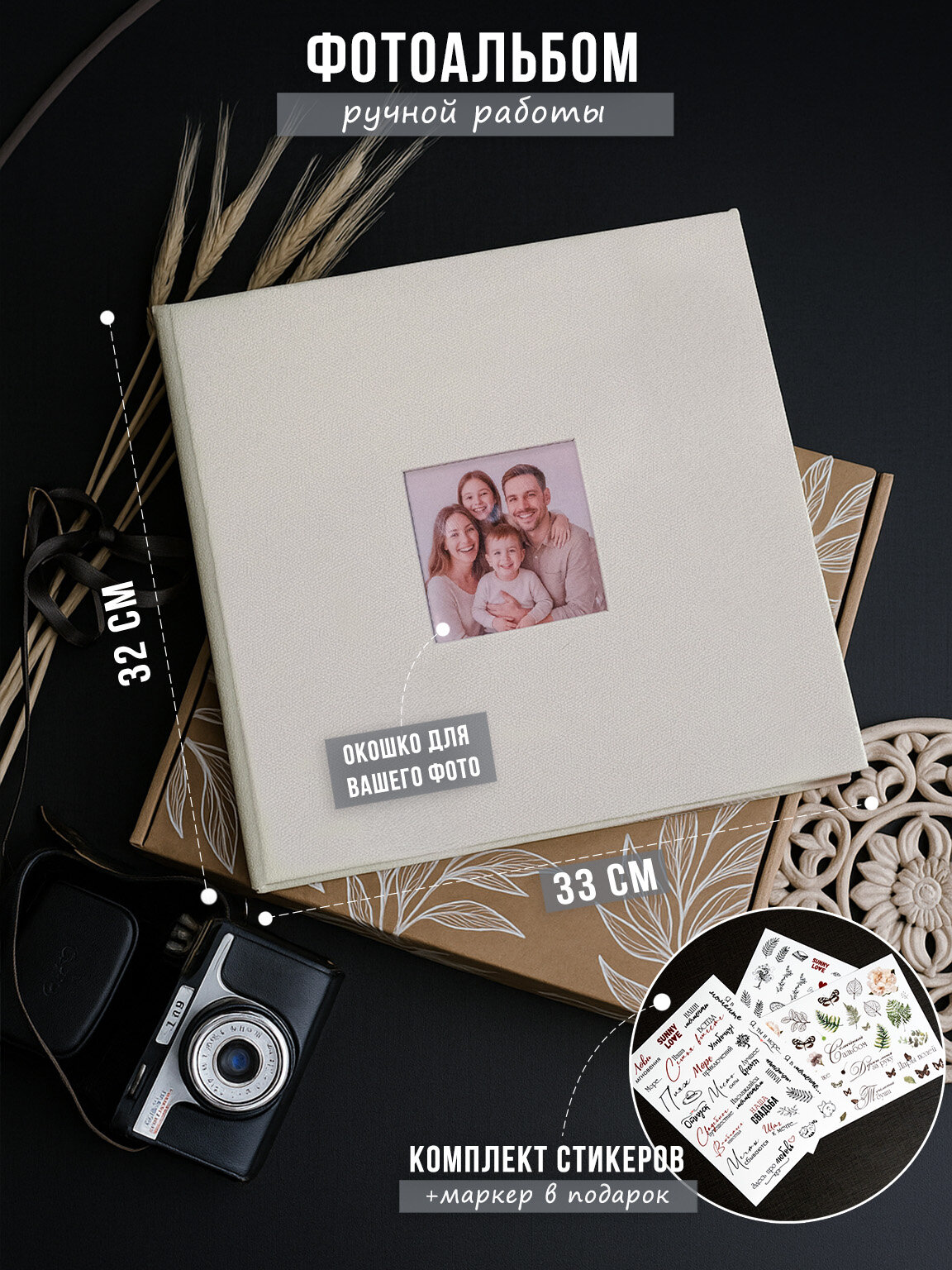 Этот фотоальбом идеально подходит для свадебных и семейных фотографий, а также для снимков с торжественных мероприятий, путешествий и других памятных событий. Стильный дизайн и окошко для вашей фотографии добавляет изысканности и уникальности, делая его прекрасным подарком на день рождения, юбилей, свадьбу или другой праздник. Формат альбома позволяет легко размещать снимки стандартного размера, а магнитное покрытие защищает их от воздействия солнечных лучей, сохраняя яркость и насыщенность цветов.