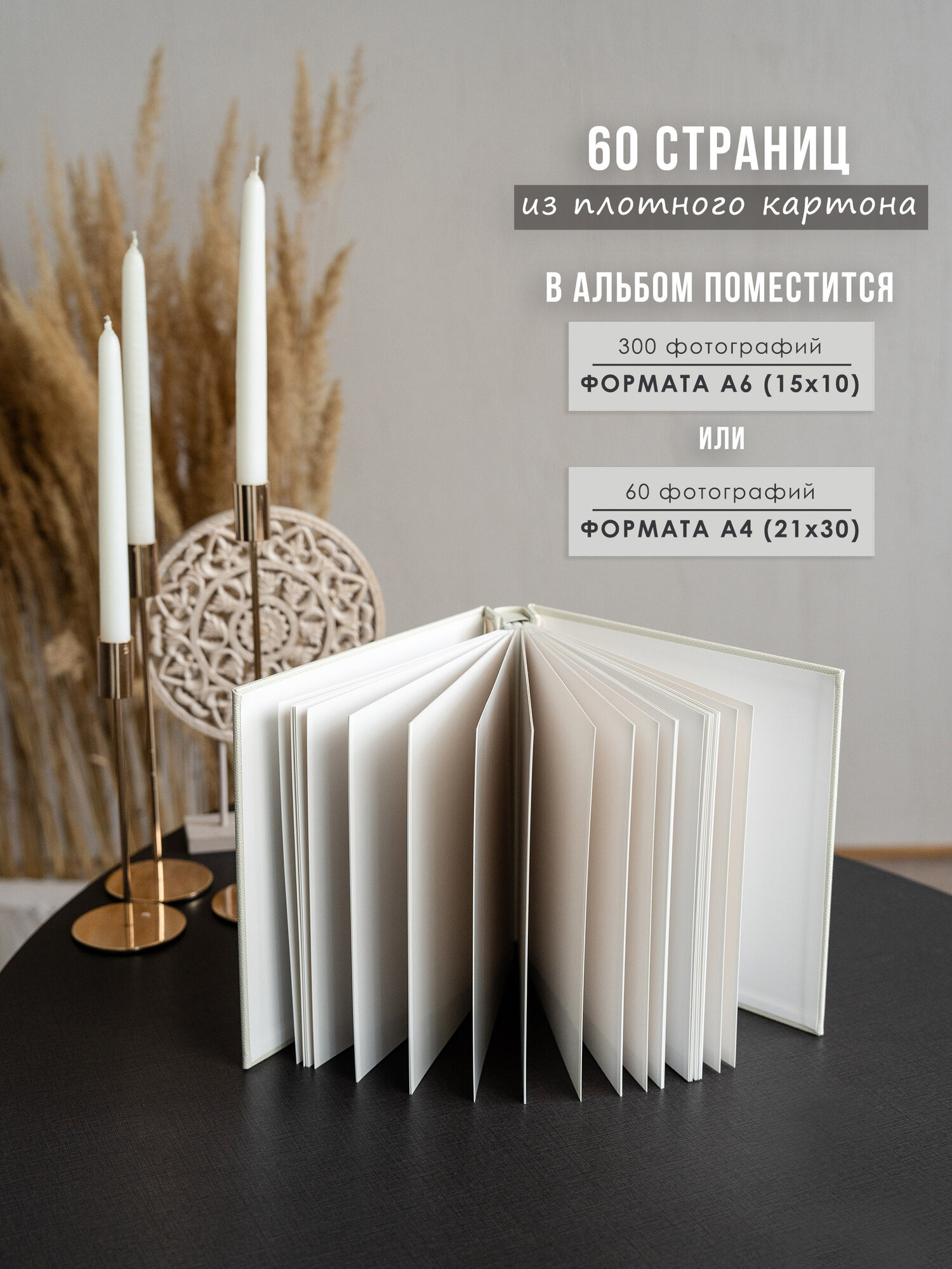 Магнитный альбом для фотографий размером до 20х30 см — это стильный и практичный аксессуар для хранения ваших незабываемых моментов. Фотоальбом вмещает 300 фотографий формата 10 на 15 см (по 5 штук на одной странице), 120 фотографий формата А5 (21х15 см) или до 60 фотографий формата А4 (21х30 см), что делает его идеальным выбором для тех, кто хочет сохранить свои самые важные воспоминания в одном месте. Прочный и элегантный альбом из экокожи станет отличным дополнением вашего интерьера. Благодаря магнитным страницам фотографии надежно фиксируются, не выскальзывают и не мнутся, а плотные листы предотвращают попадание пыли и повреждения.