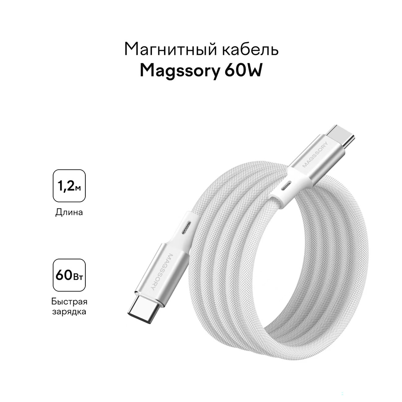 Купить Магнитный кабель Magssory 60W, USB-C, 1,2 м, silver/серебро (CBL001) с доставкой по всей России. Магнитный кабель Magssory 60W, USB-C, 1,2 м, silver/серебро (CBL001): сравнение цен, характеристики, фото, актуальное наличие и цены.