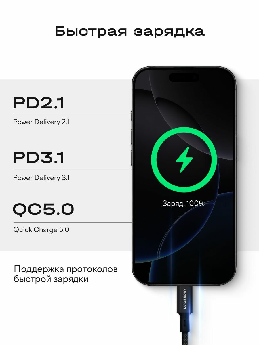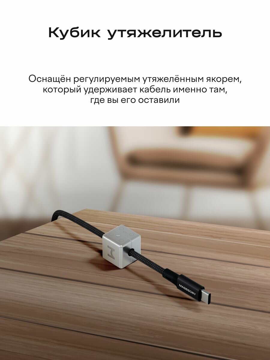 Магнитный кабель с утяжелителем Magssory Dice C 240W USB-C 2,4м CBL031 - это инновационное решение для вашего удобства при зарядке устройств. 2,4-метровый зарядный кабель с утяжеленным якорем заряжает любые устройства, сочетая мощность с удобством.