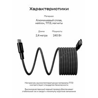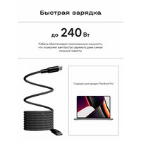 Особенностью этого кабеля для зарядки айфон является быстрая зарядка мощностью 240 Вт, что делает его идеальным выбором для устройств с разъемами USB-C. Преимущество зарядного кабеля проявляется в его высокой скорости зарядки по сравнению со стандартными кабелями.
