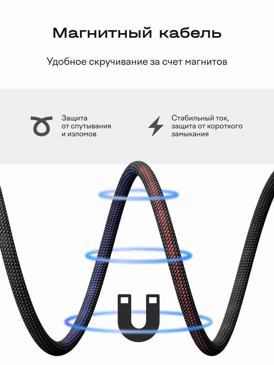 Магнитный кабель бренда Magssory CBL021 - это инновационное решение для вашего удобства при зарядке устройств. Благодаря уникальной конструкции с магнитами кабель type-c быстрая зарядка iphone легко скручивается, не заламывается и не путается, что значительно облегчает его использование.
