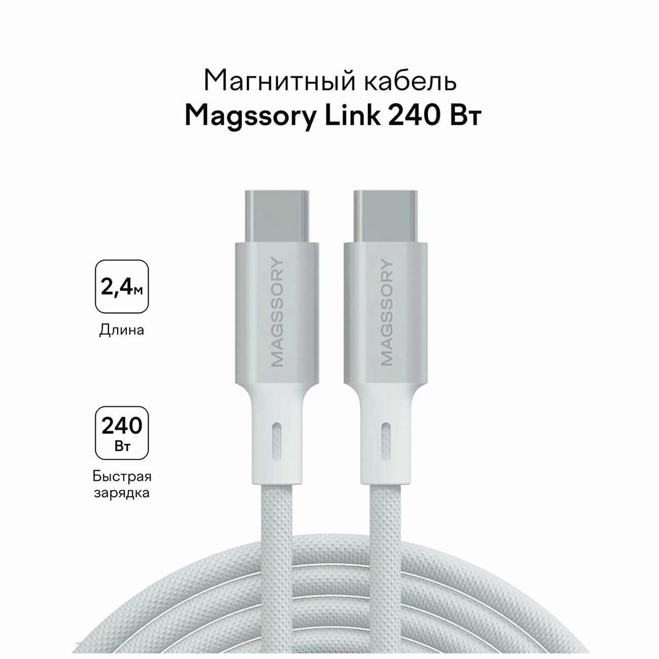 Купить Магнитный кабель Magssory Link C, 240W, USB-C, 2.4 м (white CBL021) с доставкой по всей России.