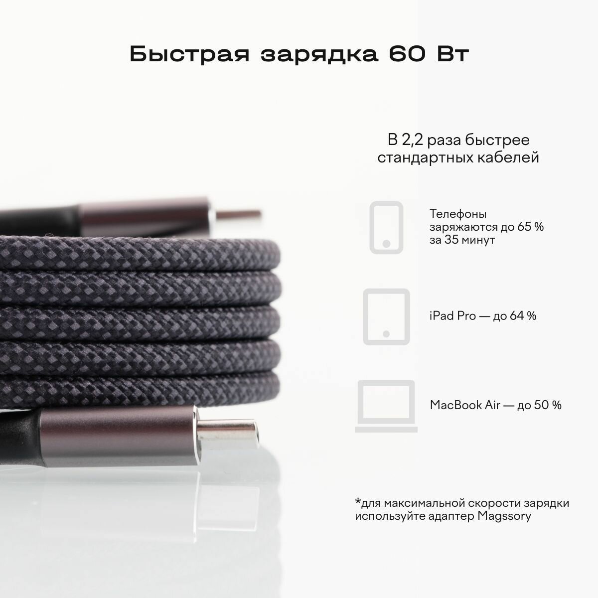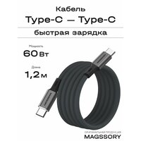 Купить Магнитный кабель Magssory CBL001, для зарядки iPhone, USB Type-C, 60Вт, силикон, длина 1.2м с доставкой по всей России.