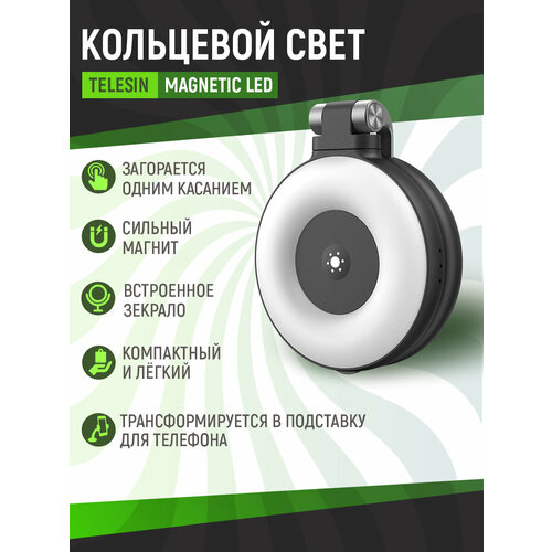 Магнитный кольцевой свет Telesin Magnetic LED для телефона: Идеальный свет для безупречных селфи и видео!