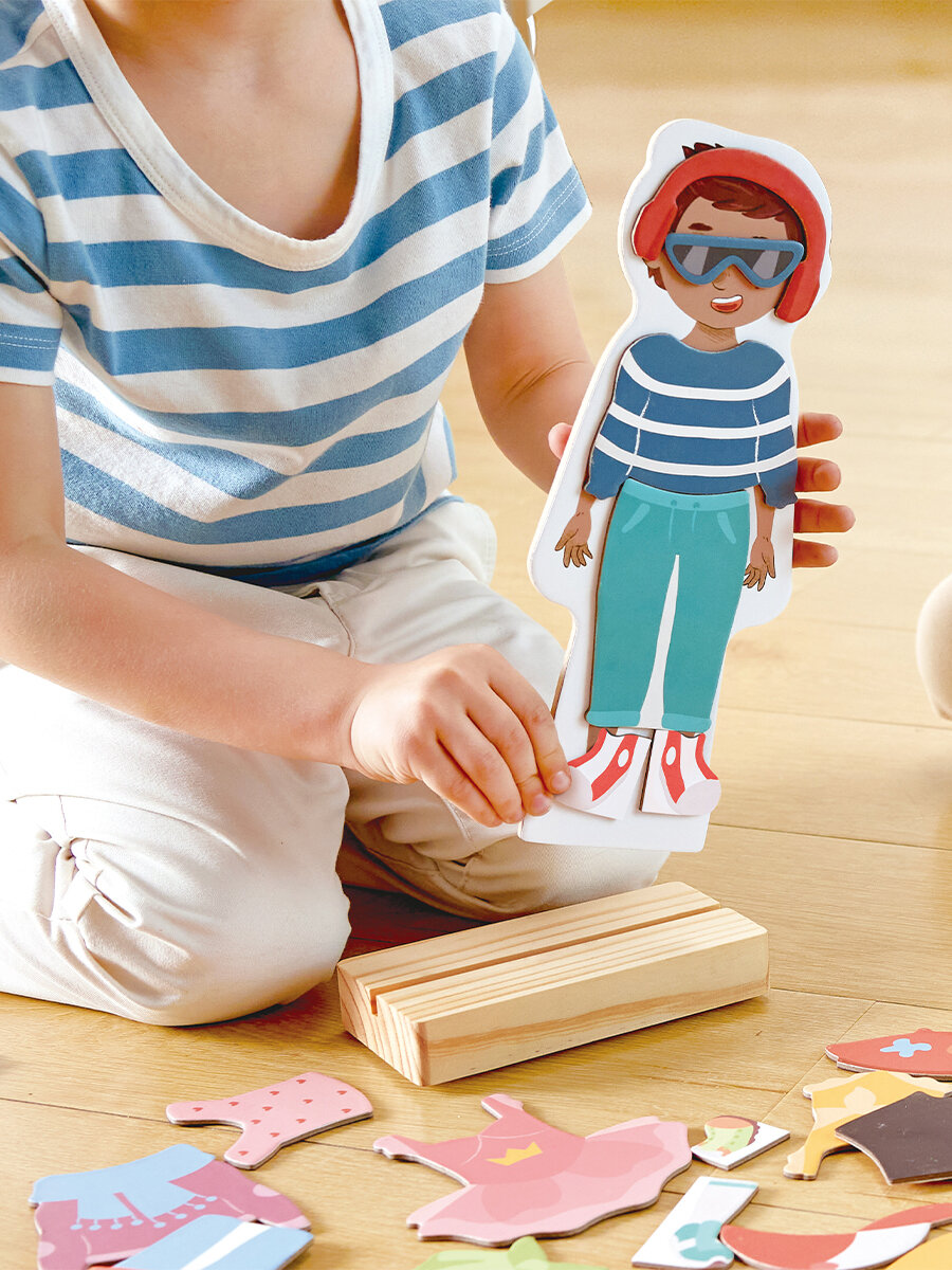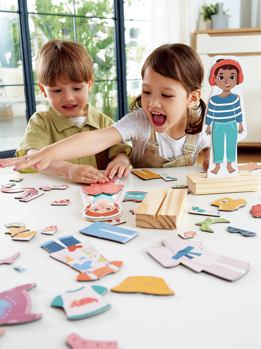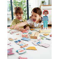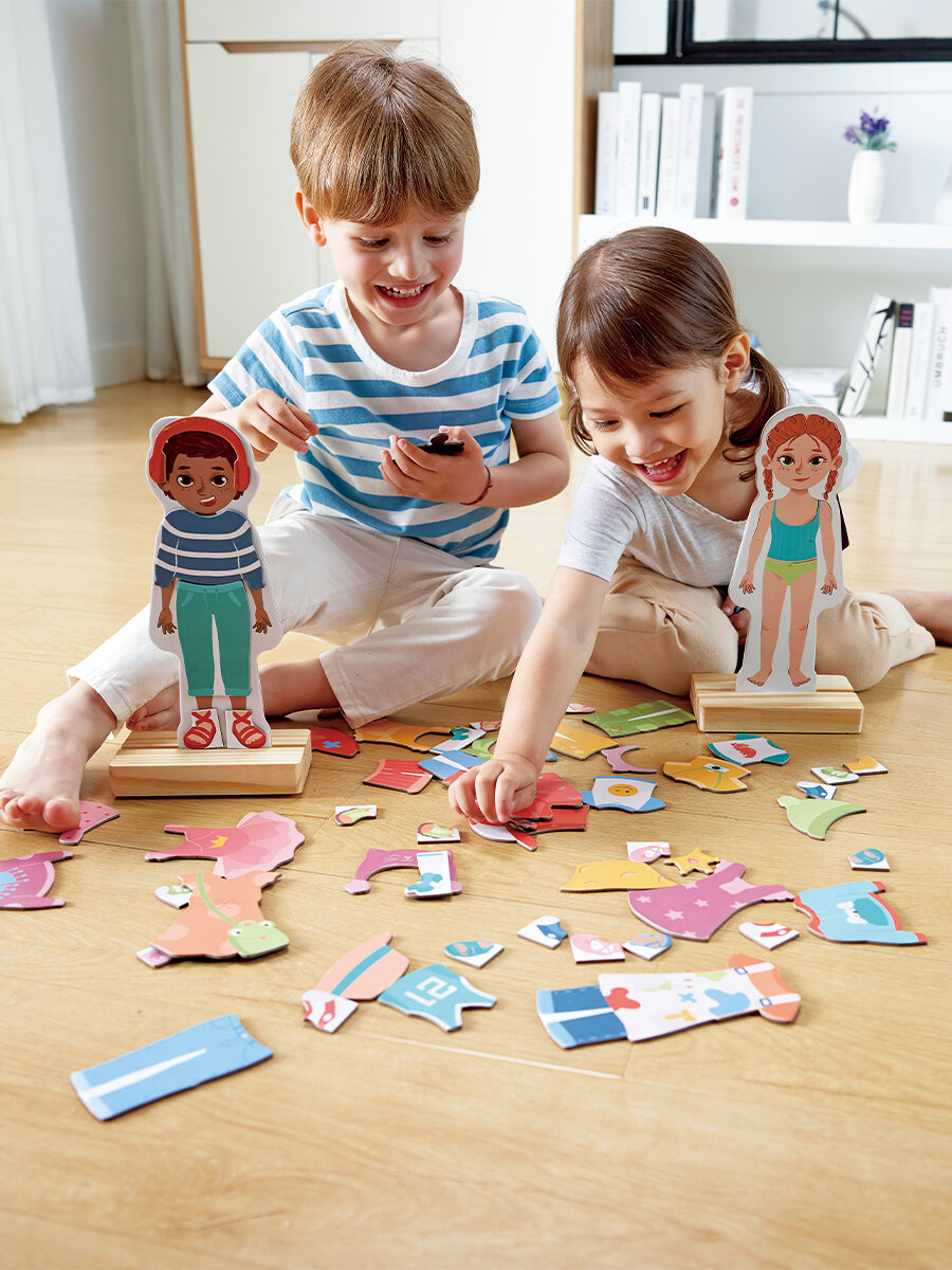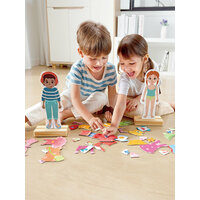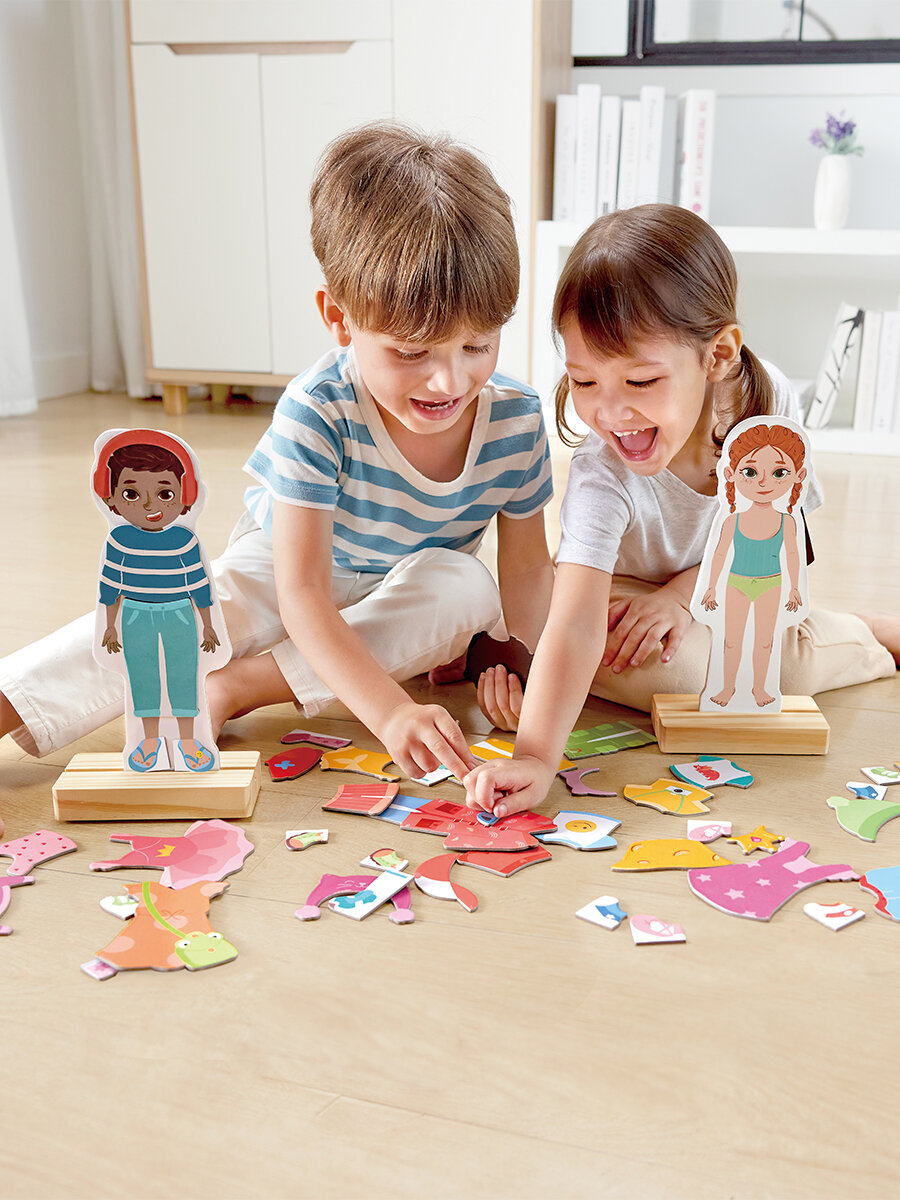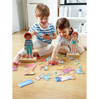 Купить Магнитный конструктор для детей Hape «Меняй наряд», 2 фигурки, 67 элементов одежды E1651_HP с доставкой по всей России.