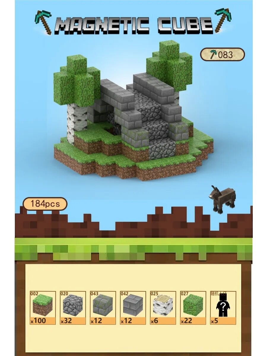 Магнитный конструктор Magnetic Cube «Майнкрафт», с фигурками, 184 детали