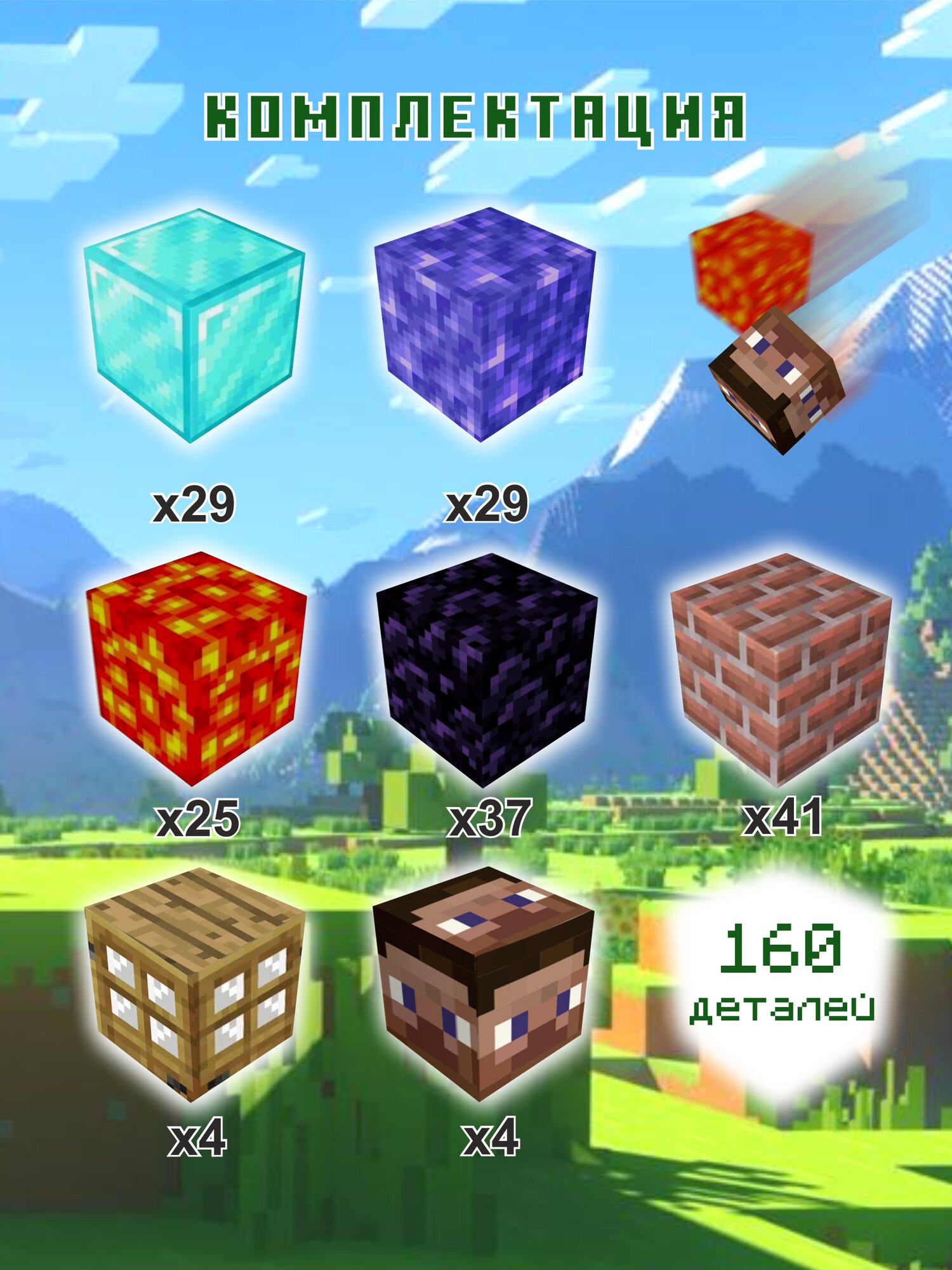 Погрузитесь в увлекательный мир Minecraft с нашим магнитным конструктором, который идеально подходит для мальчиков и девочек. Набор содержит 160 деталей, магнитные блоки позволяющие создавать различные постройки и персонажей из любимой игры. Дети смогут развивать свои творческие способности, собирая уникальные конструкции, вдохновляясь вселенной Minecraft.