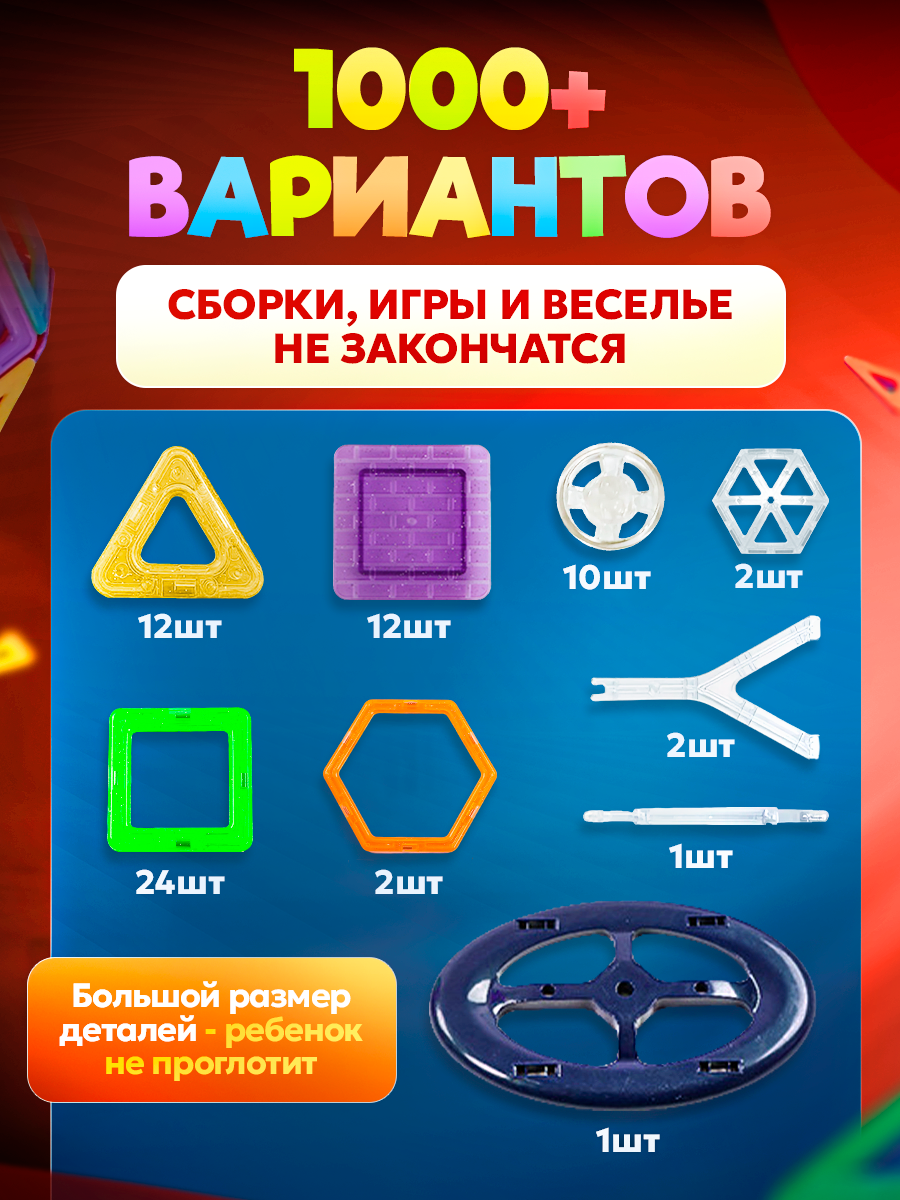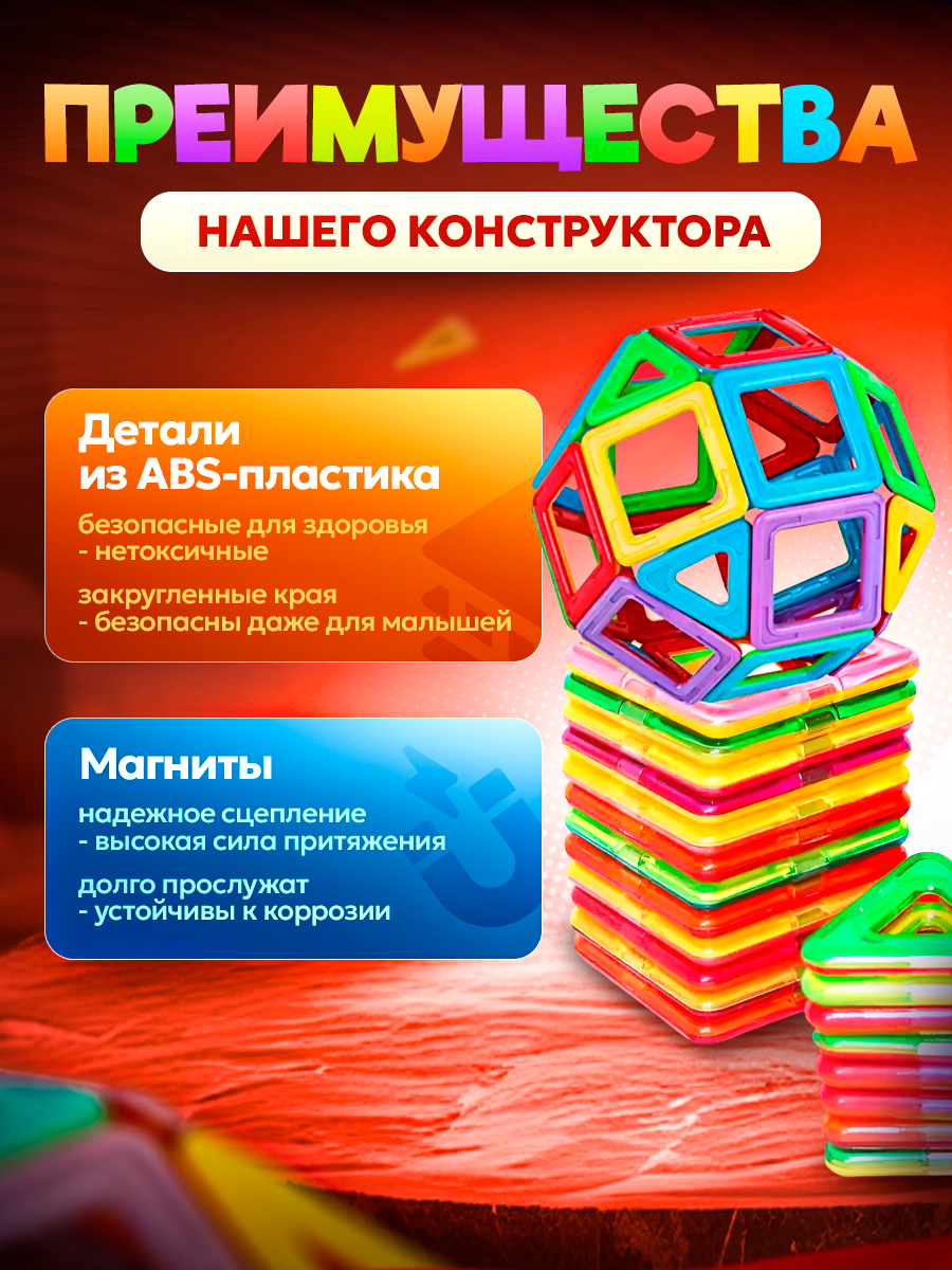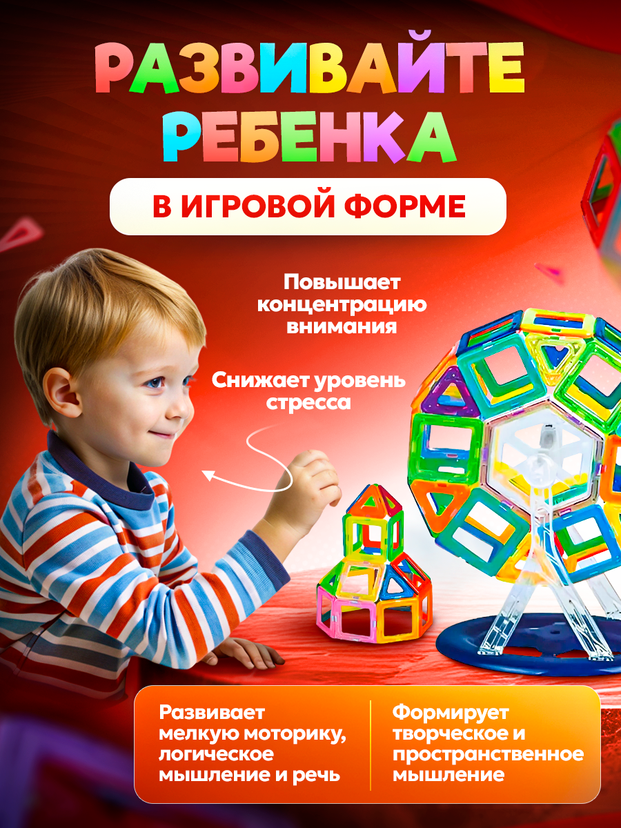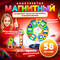 Купить Магнитный Конструктор набор 58 Деталей Развивающий Детский Магнитный Конструктор Конструкторы На Магнитах Мозаика Игрушки Для Детей с доставкой по всей России.