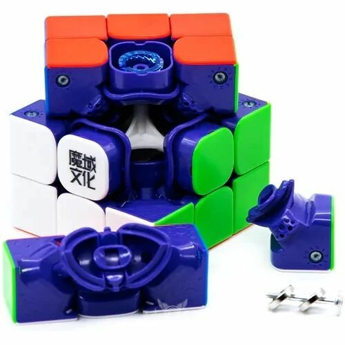 WeiLong WR M MagLev – новинка ноября 2021 года, продолжение линейки WR. Этот 3x3 оснащен фиолетовыми внутренними элементами, магнитной регулировкой, регулировкой натяжения и сжатия пружин, а также системой магнитного отталкивания вместо стандартных пружин и болтов. MagLev система стала популярной в последнее время. В ней элементы взаимодействуют на основе магнитной подвески, благодаря ей устраняется терние и звук шороха пружин, прибавляется скорость во вращении. В головоломке внедрена система регулировки силы магнитов ребро-угол. Есть 5 положений силы магнитности, чтобы подстроить под себя вращение. А в самой системе магнитной подвески 9 вариантов настройки. Комбинируйте, чтобы сделать хорошую головоломку «под ключ». Размер головоломки 55 миллиметров, это стандарт на сегодняшний день. Удобно собирать как двумя руками, так и одной. Само вращение мягкое и быстрое, стабильное. Головоломку приятно даже не собирать, а просто крутить в руках. Производитель реализовал внутренние элементы фиолетового цвета, это выглядит необычно красиво!