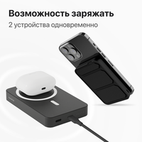 Магнитный внешний аккумулятор для телефона, работает как беспроводное зарядное устройство для вашего iPhone и AirPods. Повер банк с поддержкой fast charge. Портативную зарядку удобно использовать в дороге, путешествиях, на учебе. Гарантия от производителя 1 год. В нашем магазине вы также можете найти магнитные повербанки для айфона на 5000 mAh мощностью 20W.
